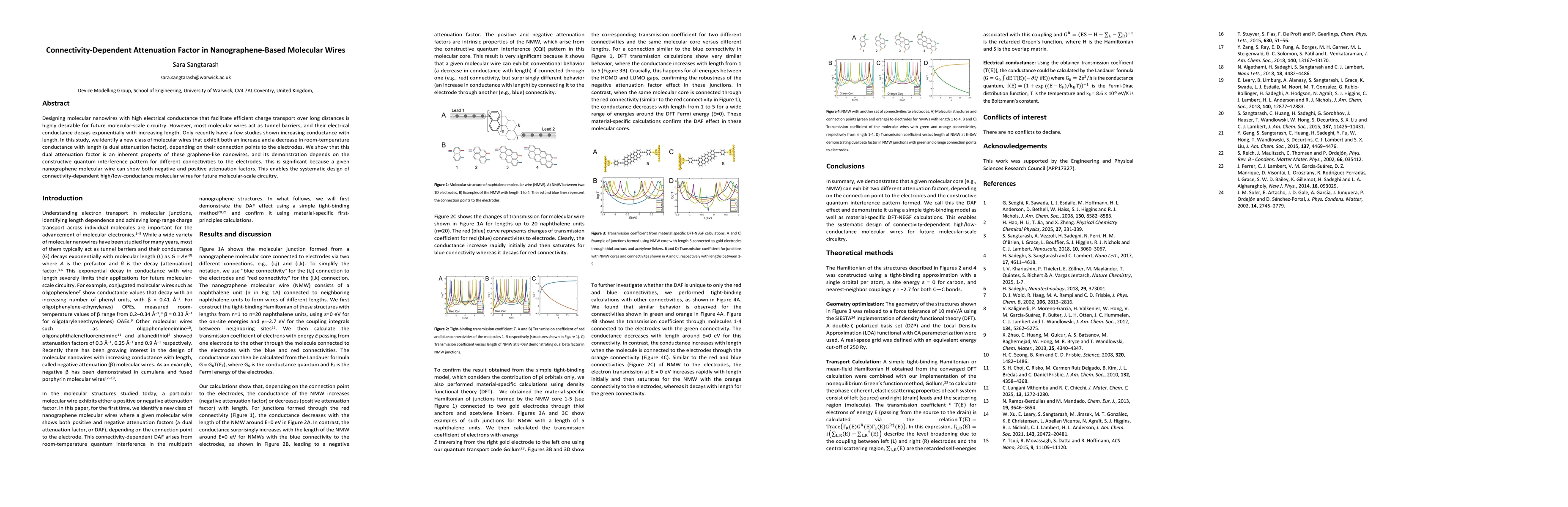 This study identifies a novel class of graphene-like nanowires that exhibit both increasing and decreasing electrical conductance with length, termed a dual attenuation factor, depending on their connection points to electrodes. This dual behavior is attributed to constructive quantum interference patterns, enabling the design of connectivity-dependent high/low-conductance molecular wires for future molecular-scale circuitry.