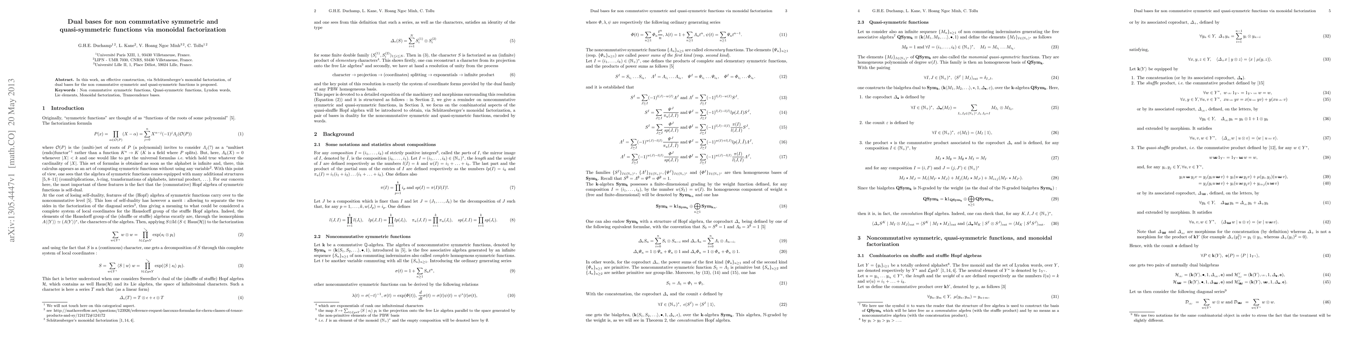 Researchers propose a method to construct dual bases for non-commutative symmetric and quasi-symmetric functions using Sch"utzenberger's monoidal factorization, offering an effective solution for these mathematical constructs.
