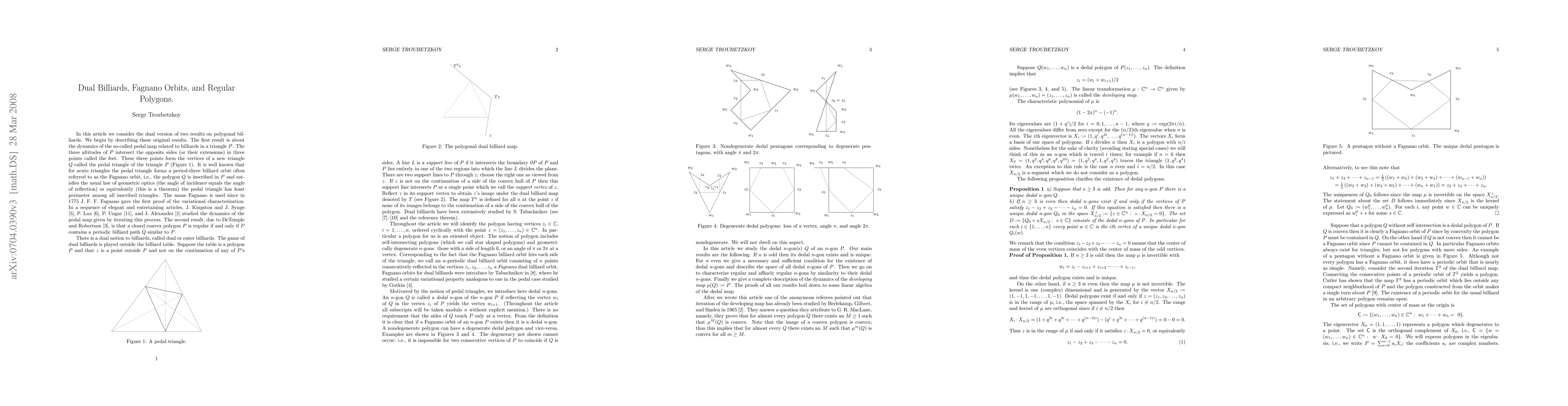 Summary: This paper investigates Fagnano orbits in dual polygonal billiards to characterize regular polygons and explores the behavior of the developing map through its iterations. The study highlights the unique properties of these orbits in relation to polygonal geometry.