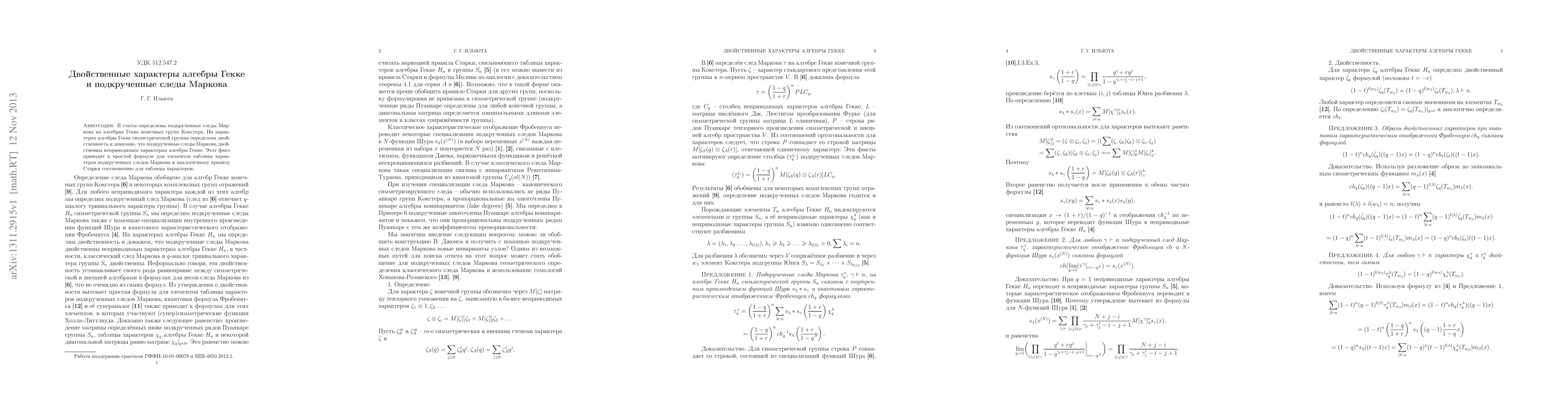 The paper presents a detailed analysis of the duality between twisted Markov traces and characters of the Hecke algebra, providing explicit formulas and proofs.