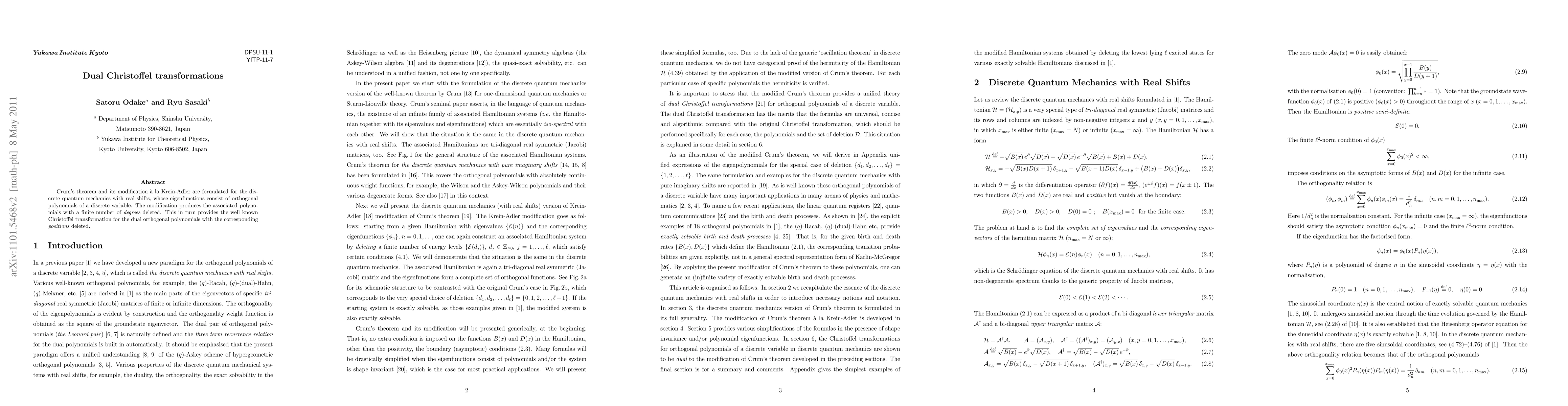 This paper formulates Crum's theorem and its Krein-Adler modification for discrete quantum mechanics with real shifts, generating associated orthogonal polynomials with specific degrees deleted, leading to the Christoffel transformation for dual orthogonal polynomials.
