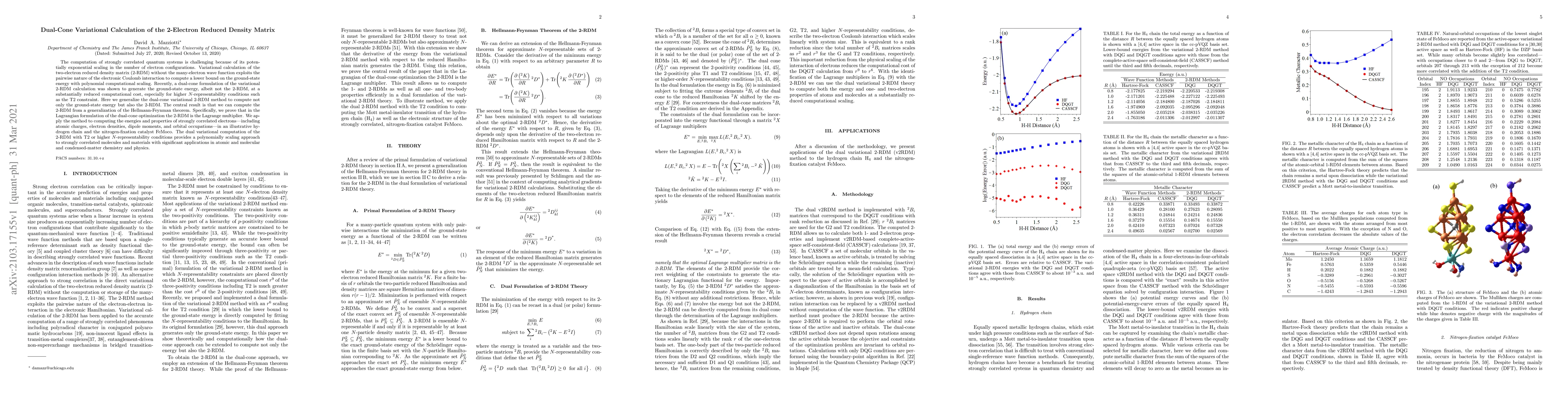 This paper generalizes a dual-cone variational method to compute both the ground-state energy and the two-electron reduced density matrix (2-RDM) for strongly correlated quantum systems with polynomial computational scaling. The method leverages a generalized Hellmann-Feynman theorem, where the 2-RDM is identified as the Lagrange multiplier in the dual-cone optimization, enabling efficient calculations for complex molecular and material systems.