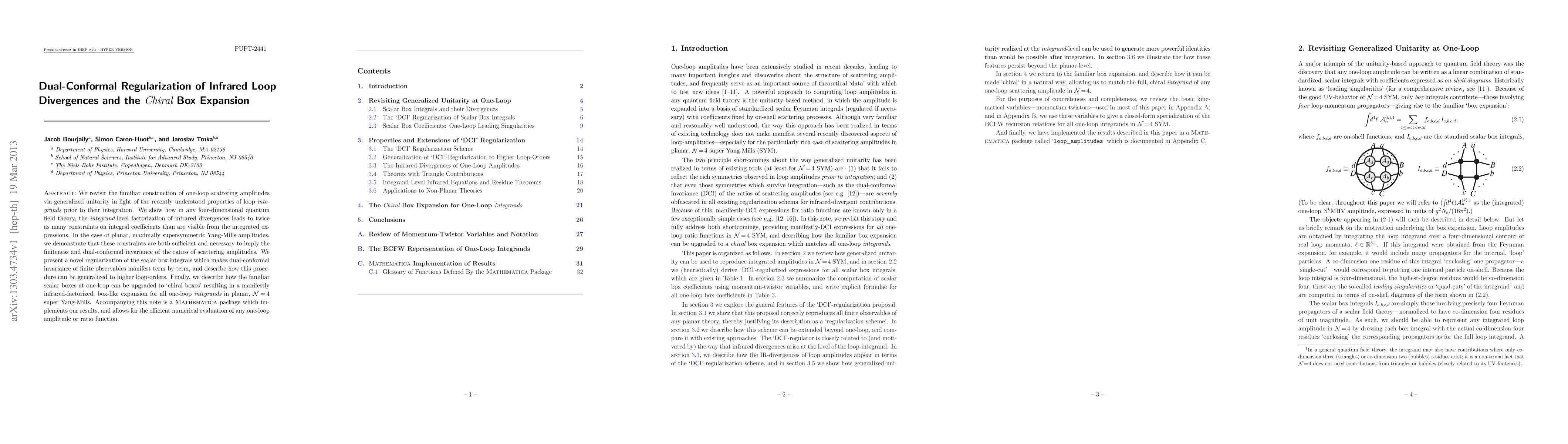 We revisit the familiar construction of one-loop scattering amplitudes via generalized unitarity in light of the recently understood properties of loop integrands prior to their integration. We show how in any four-dimensional quantum field theory, the integrand-level factorization of infrared divergences leads to twice as many constraints on integral coefficients than are visible from the integrated expressions. In the case of planar, maximally supersymmetric Yang-Mills amplitudes, we demonstrate that these constraints are both sufficient and necessary to imply the finiteness and dual-conformal invariance of the ratios of scattering amplitudes. We present a novel regularization of the scalar box integrals which makes dual-conformal invariance of finite observables manifest term by term, and describe how this procedure can be generalized to higher loop-orders. Finally, we describe how the familiar scalar boxes at one-loop can be upgraded to `chiral boxes' resulting in a manifestly infrared-factorized, box-like expansion for all one-loop integrands in planar, N=4 super Yang-Mills. Accompanying this note is a Mathematica package which implements our results, and allows for the efficient numerical evaluation of any one-loop amplitude or ratio function.