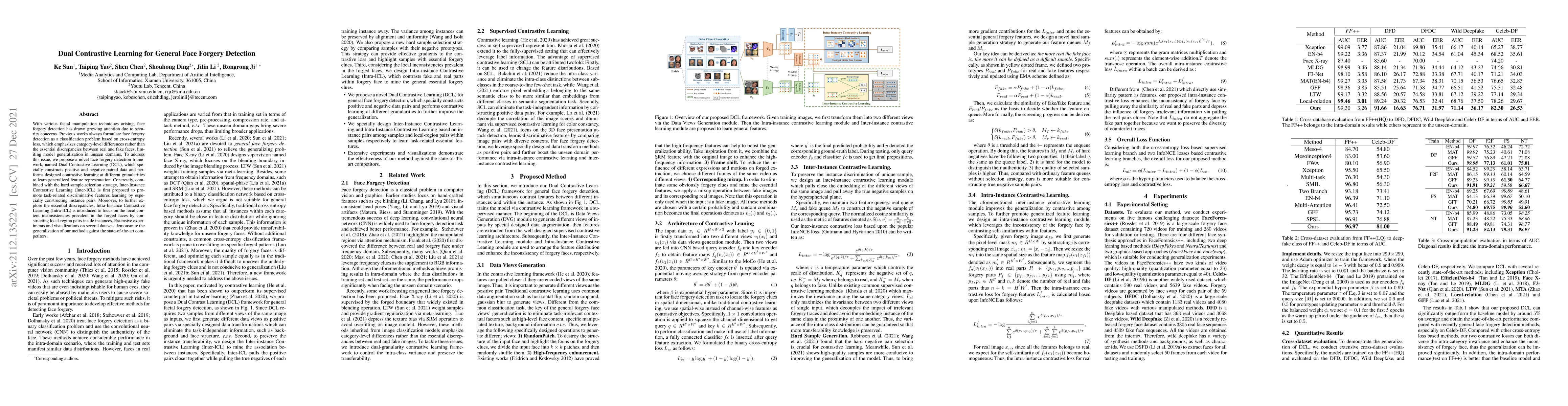 The paper proposes Dual Contrastive Learning (DCL) for face forgery detection, addressing limitations of traditional classification methods by employing Inter-Instance and Intra-Instance Contrastive Learning to enhance feature representation and detect local inconsistencies in forged faces, leading to improved generalization. Experimental results show superior performance compared to state-of-the-art methods.