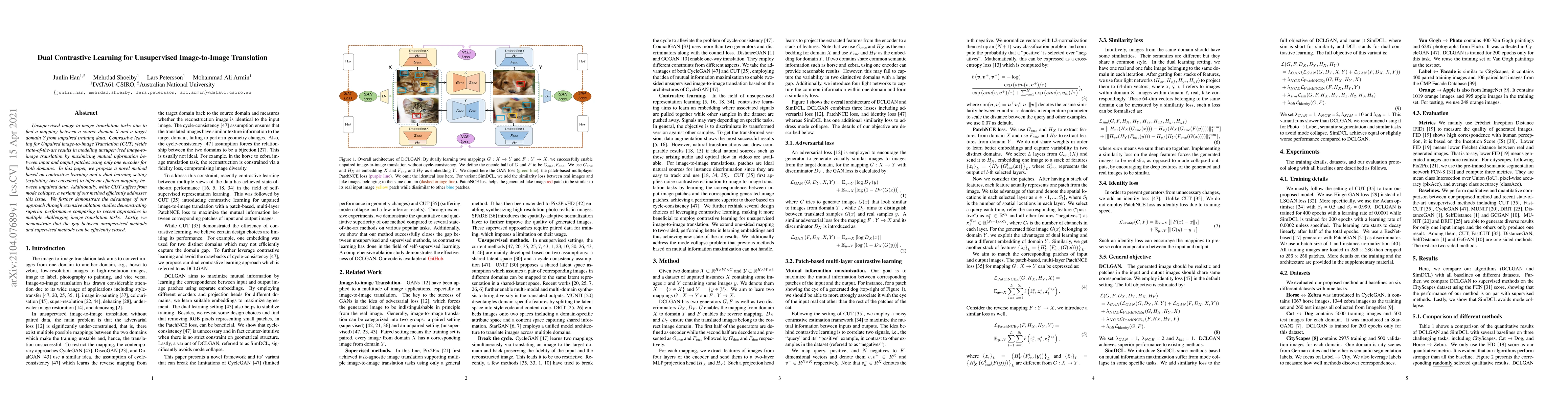 This paper proposes a dual contrastive learning method for unsupervised image-to-image translation using two encoders to improve mapping efficiency and address mode collapse, outperforming existing methods in various tasks and closing the gap with supervised techniques.