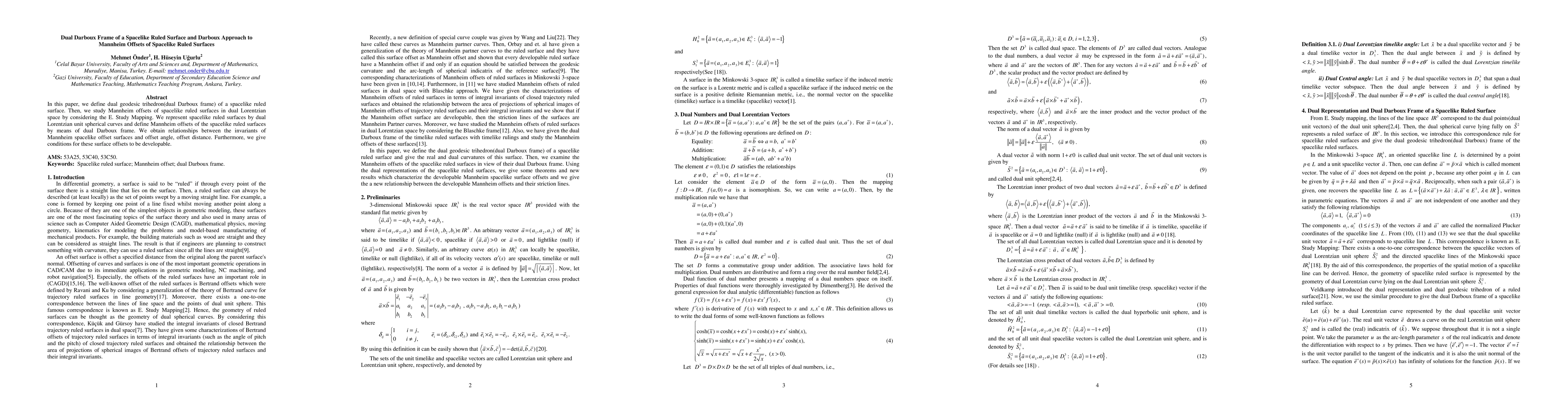 This paper introduces a dual Darboux frame for spacelike ruled surfaces and explores Mannheim offsets using the E. Study Mapping. It defines these offsets via dual Lorentzian unit spherical curves and establishes relationships between invariants and parameters like offset angle and distance, concluding with conditions for developability.