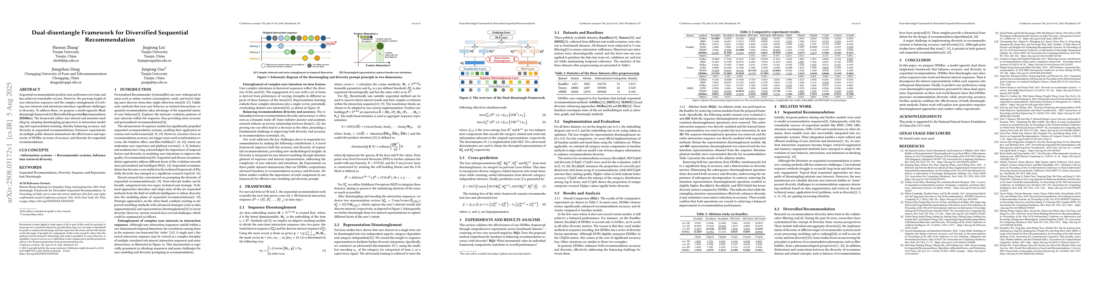 Sequential recommendation predicts user preferences over time and has achieved remarkable success. However, the growing length of user interaction sequences and the complex entanglement of evolving user interests and intentions introduce significant challenges to diversity. To address these, we propose a model-agnostic Dual-disentangle framework for Diversified Sequential Recommendation (DDSRec). The framework refines user interest and intention modeling by adopting disentangling perspectives in interaction modeling and representation learning, thereby balancing accuracy and diversity in sequential recommendations. Extensive experiments on multiple public datasets demonstrate the effectiveness and superiority of DDSRec in terms of accuracy and diversity for sequential recommendations.