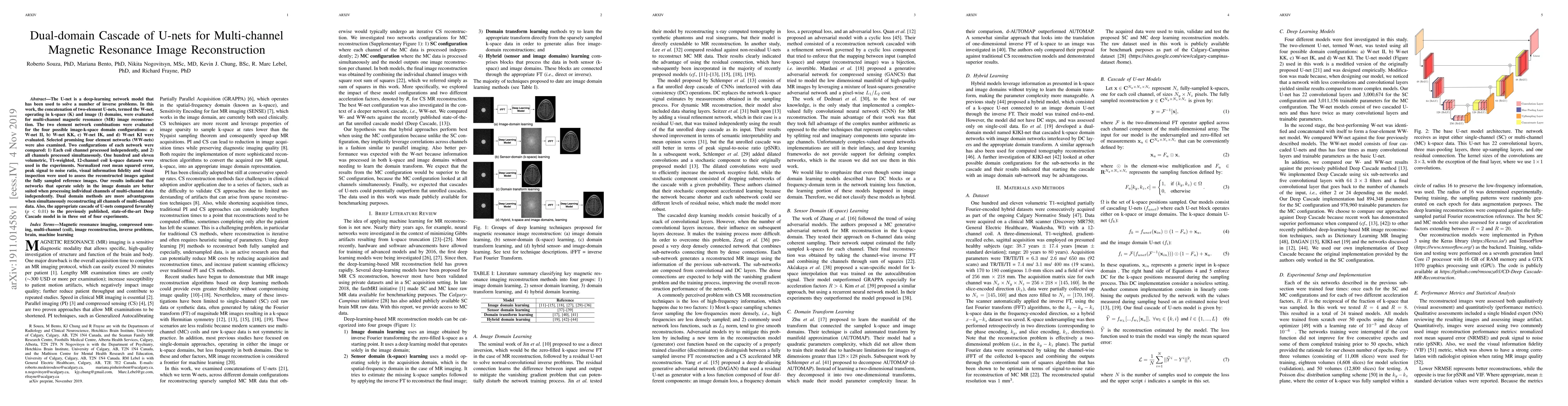 This research proposes a dual-domain cascade of U-nets, termed W-nets, for multi-channel magnetic resonance image reconstruction, evaluating different configurations and comparing them to state-of-the-art models. Results show that image-domain-only networks perform better for individual channel reconstruction, while dual-domain methods are more effective for simultaneous reconstruction, outperforming previous models in most cases.