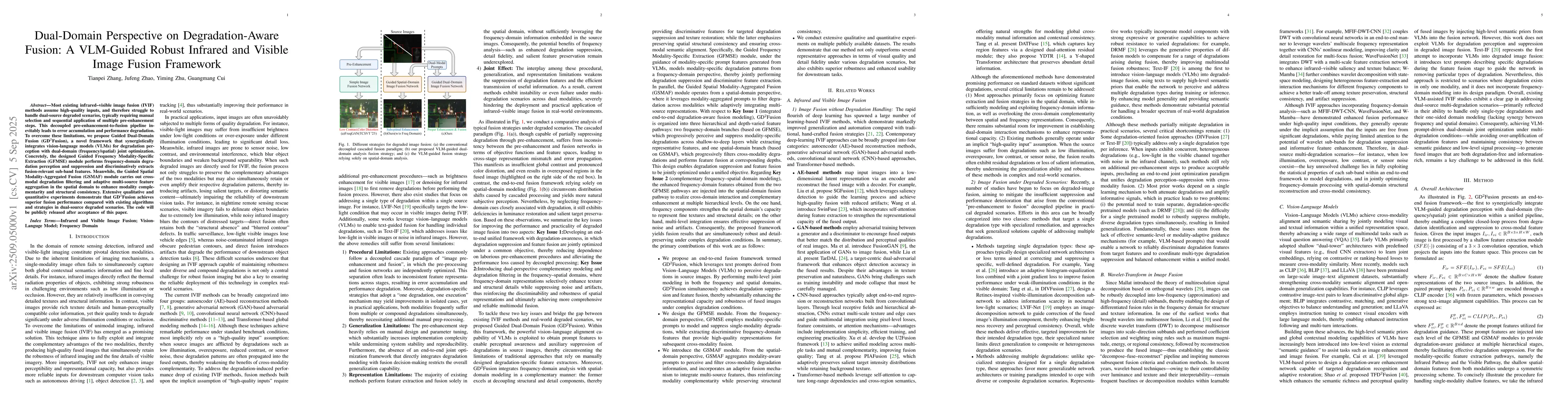 Most existing infrared-visible image fusion (IVIF) methods assume high-quality inputs, and therefore struggle to handle dual-source degraded scenarios, typically requiring manual selection and sequential application of multiple pre-enhancement steps. This decoupled pre-enhancement-to-fusion pipeline inevitably leads to error accumulation and performance degradation. To overcome these limitations, we propose Guided Dual-Domain Fusion (GD^2Fusion), a novel framework that synergistically integrates vision-language models (VLMs) for degradation perception with dual-domain (frequency/spatial) joint optimization. Concretely, the designed Guided Frequency Modality-Specific Extraction (GFMSE) module performs frequency-domain degradation perception and suppression and discriminatively extracts fusion-relevant sub-band features. Meanwhile, the Guided Spatial Modality-Aggregated Fusion (GSMAF) module carries out cross-modal degradation filtering and adaptive multi-source feature aggregation in the spatial domain to enhance modality complementarity and structural consistency. Extensive qualitative and quantitative experiments demonstrate that GD^2Fusion achieves superior fusion performance compared with existing algorithms and strategies in dual-source degraded scenarios. The code will be publicly released after acceptance of this paper.