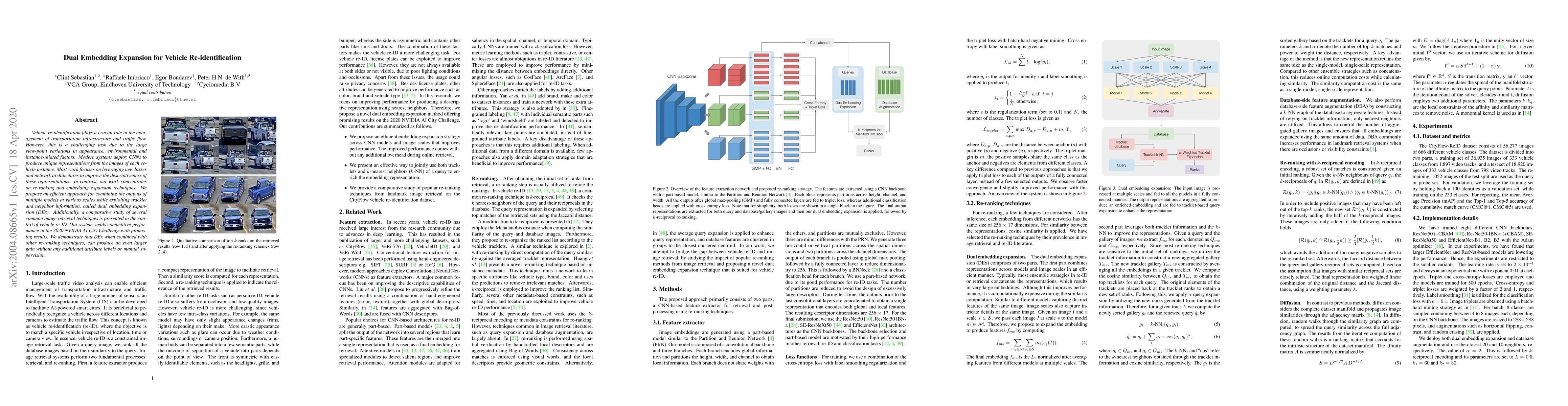 Vehicle re-identification plays a crucial role in the management of transportation infrastructure and traffic flow. However, this is a challenging task due to the large view-point variations in appearance, environmental and instance-related factors. Modern systems deploy CNNs to produce unique representations from the images of each vehicle instance. Most work focuses on leveraging new losses and network architectures to improve the descriptiveness of these representations. In contrast, our work concentrates on re-ranking and embedding expansion techniques. We propose an efficient approach for combining the outputs of multiple models at various scales while exploiting tracklet and neighbor information, called dual embedding expansion (DEx). Additionally, a comparative study of several common image retrieval techniques is presented in the context of vehicle re-ID. Our system yields competitive performance in the 2020 NVIDIA AI City Challenge with promising results. We demonstrate that DEx when combined with other re-ranking techniques, can produce an even larger gain without any additional attribute labels or manual supervision.