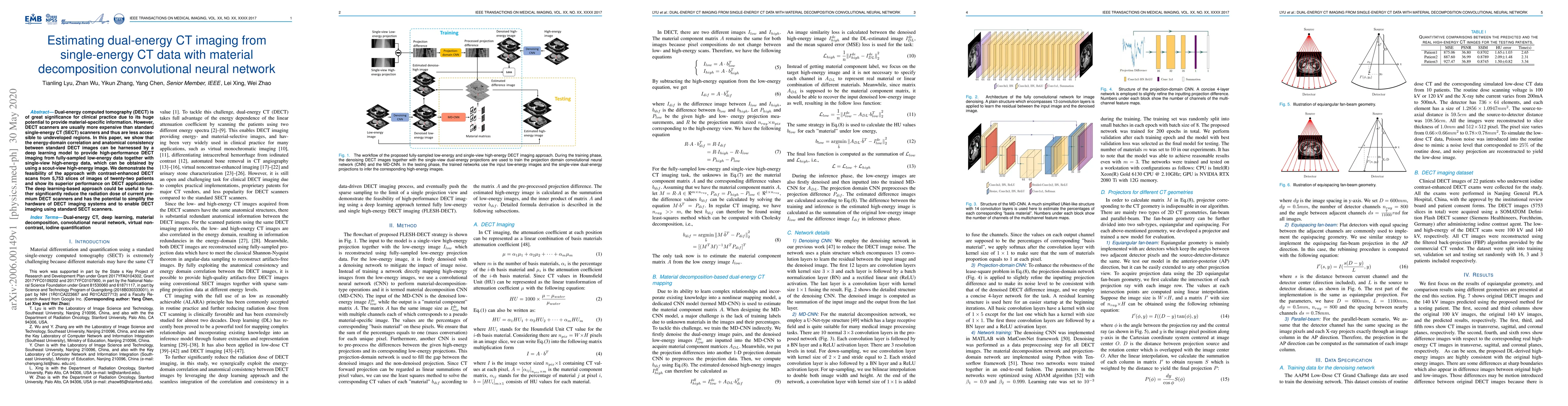 This paper proposes a deep learning model that converts single-energy CT (SECT) data into dual-energy CT (DECT) images, leveraging material decomposition. This approach can reduce costs and radiation dose, potentially enabling DECT imaging using standard SECT scanners.
