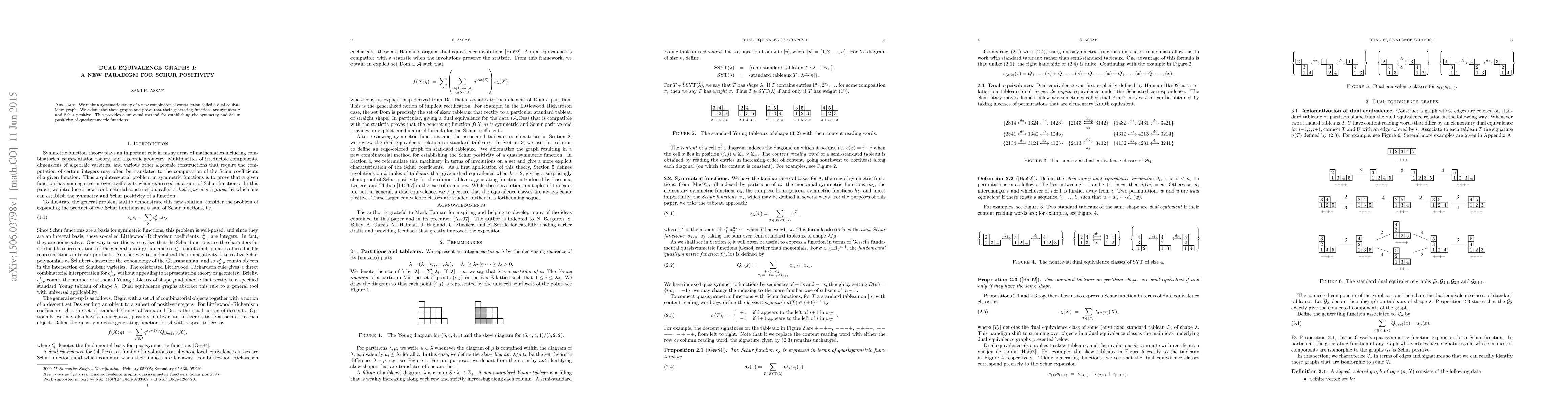 This paper introduces dual equivalence graphs, axiomatizes them, and demonstrates their generating functions are symmetric and Schur positive, offering a new method for proving the symmetry and Schur positivity of quasisymmetric functions.