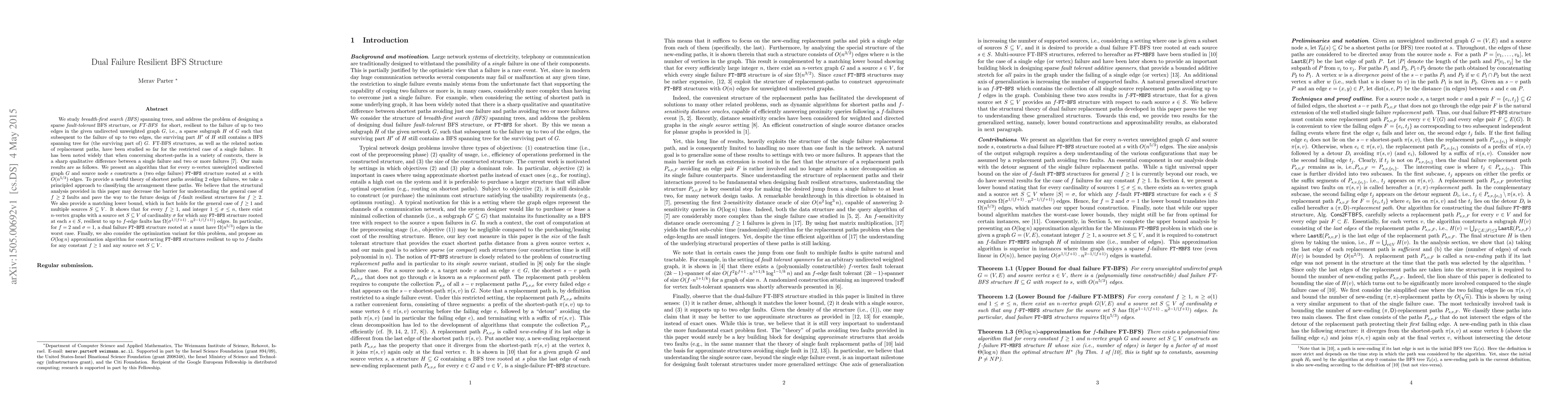We study {\em breadth-first search (BFS)} spanning trees, and address the problem of designing a sparse {\em fault-tolerant} BFS structure, or {\em FT-BFS } for short, resilient to the failure of up to two edges in the given undirected unweighted graph $G$, i.e., a sparse subgraph $H$ of $G$ such that subsequent to the failure of up to two edges, the surviving part $H'$ of $H$ still contains a BFS spanning tree for (the surviving part of) $G$. FT-BFS structures, as well as the related notion of replacement paths, have been studied so far for the restricted case of a single failure. It has been noted widely that when concerning shortest-paths in a variety of contexts, there is a sharp qualitative difference between a single failure and two or more failures. Our main results are as follows. We present an algorithm that for every $n$-vertex unweighted undirected graph $G$ and source node $s$ constructs a (two edge failure) FT-BFS structure rooted at $s$ with $O(n^{5/3})$ edges. To provide a useful theory of shortest paths avoiding 2 edges failures, we take a principled approach to classifying the arrangement these paths. We believe that the structural analysis provided in this paper may decrease the barrier for understanding the general case of $f\geq 2$ faults and pave the way to the future design of $f$-fault resilient structures for $f \geq 2$. We also provide a matching lower bound, which in fact holds for the general case of $f \geq 1$ and multiple sources $S \subseteq V$. It shows that for every $f\geq 1$, and integer $1 \leq \sigma \leq n$, there exist $n$-vertex graphs with a source set $S \subseteq V$ of cardinality $\sigma$ for which any FT-BFS structure rooted at each $s \in S$, resilient to up to $f$-edge faults has $\Omega(\sigma^{1/(f+1)} \cdot n^{2-1/(f+1)})$ edges.