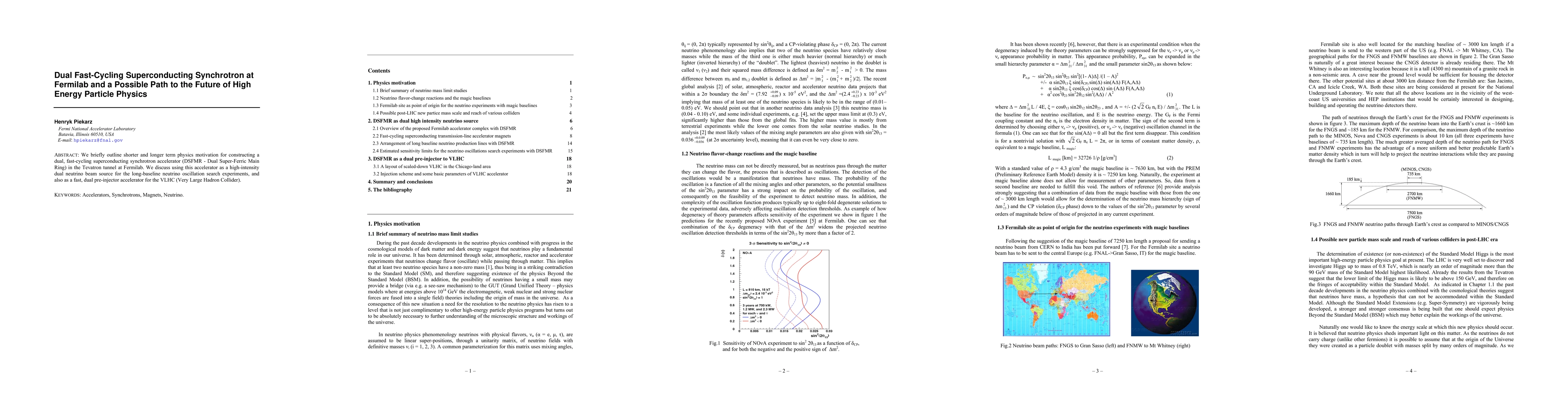 We briefly outline shorter and longer term physics motivation for constructing a dual, fast-cycling superconducting synchrotron accelerator (DSFMR - Dual Super-Ferric Main Ring) in the Tevatron tunnel at Fermilab. We discuss using this accelerator as a high-intensity dual neutrino beam source for the long-baseline neutrino oscillation search experiments, and also as a fast, dual pre-injector accelerator for the VLHC (Very Large Hadron Collider).