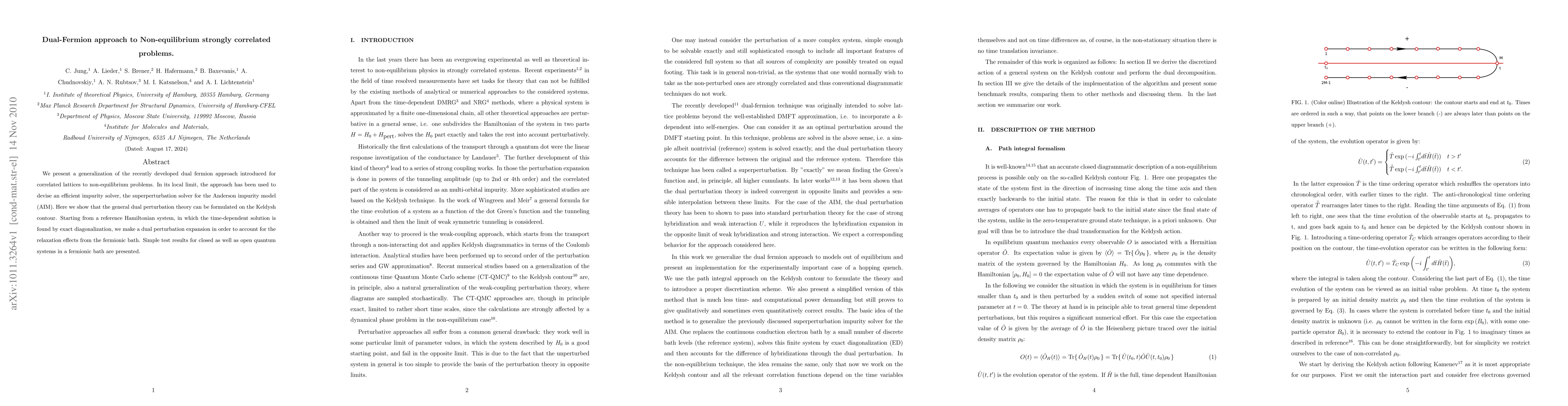 This paper generalizes the dual fermion approach to non-equilibrium problems, formulating it on the Keldysh contour to handle relaxation effects in fermionic baths. It demonstrates the approach through exact diagonalization and presents test results for both closed and open quantum systems.