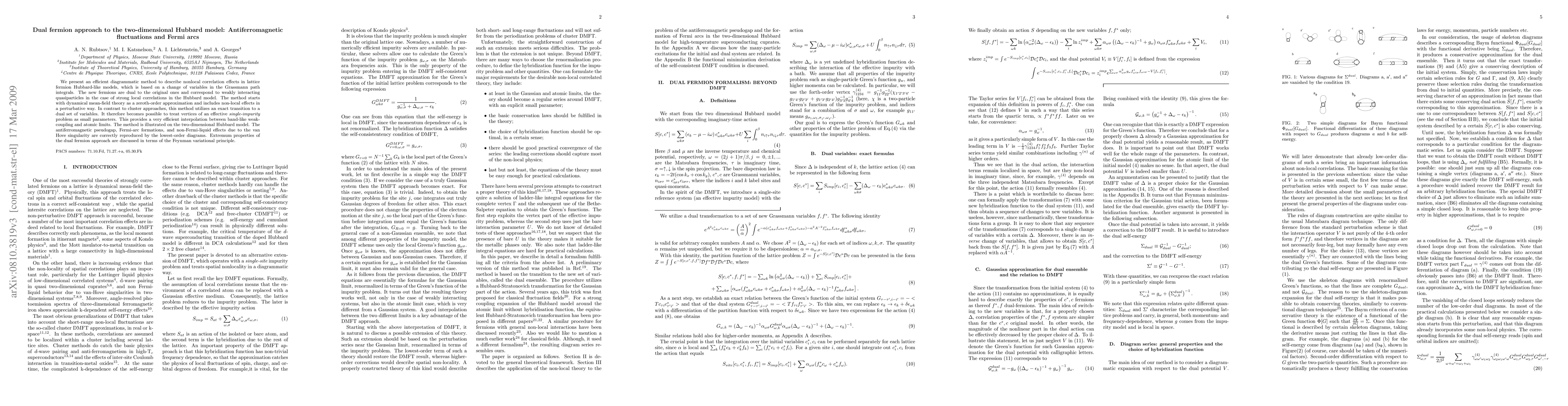 The paper introduces a dual fermion approach to analyze the two-dimensional Hubbard model, capturing antiferromagnetic fluctuations and Fermi arcs. This method, based on a Grassmann path integral transformation, efficiently handles nonlocal correlation effects by treating dual fermions corresponding to weakly interacting quasiparticles.