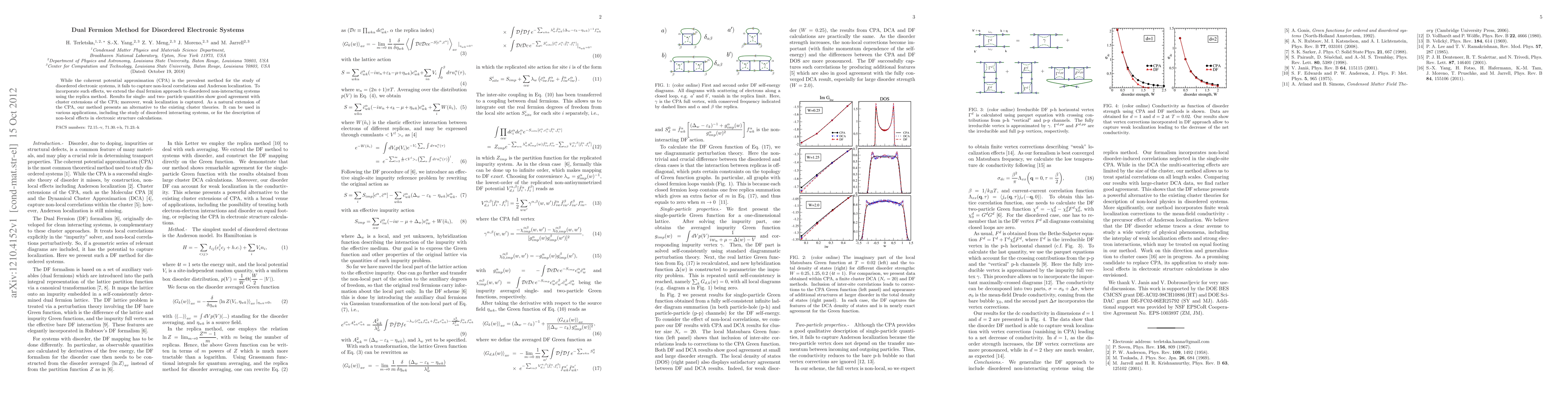 The dual fermion method, extended using the replica technique, offers a novel approach to studying disordered electronic systems, capturing non-local correlations and Anderson localization where traditional CPA falls short. It shows promising results for single- and two-particle quantities and can be applied to disordered interacting systems and electronic structure calculations.
