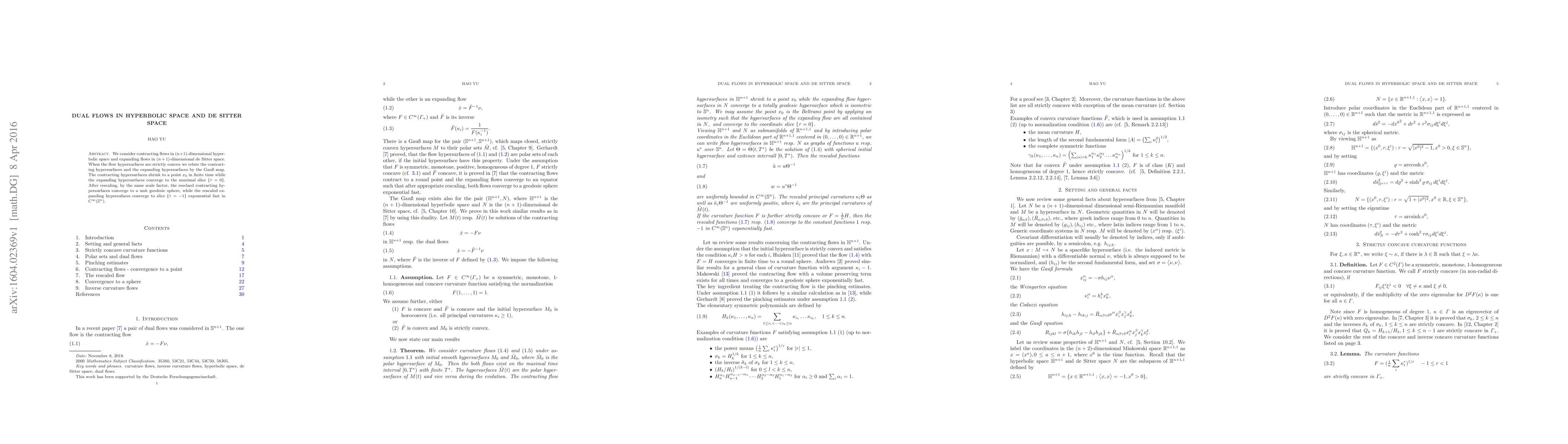 We consider contracting flows in $(n+1)$-dimensional hyperbolic space and expanding flows in $(n+1)$-dimensional de Sitter space. When the flow hypersurfaces are strictly convex we relate the contracting hypersurfaces and the expanding hypersurfaces by the Gauss map. The contracting hypersurfaces shrink to a point $x_0$ in finite time while the expanding hypersurfaces converge to the maximal slice $\{ \tau =0\}$. After rescaling, by the same scale factor, the resclaed contracting hypersurfaces converge to a unit geodesic sphere, while the rescaled expanding hypersufaces converge to slice $\{ \tau = -1\}$ exponential fast in $C^\infty(\mathbb{S}^n)$.