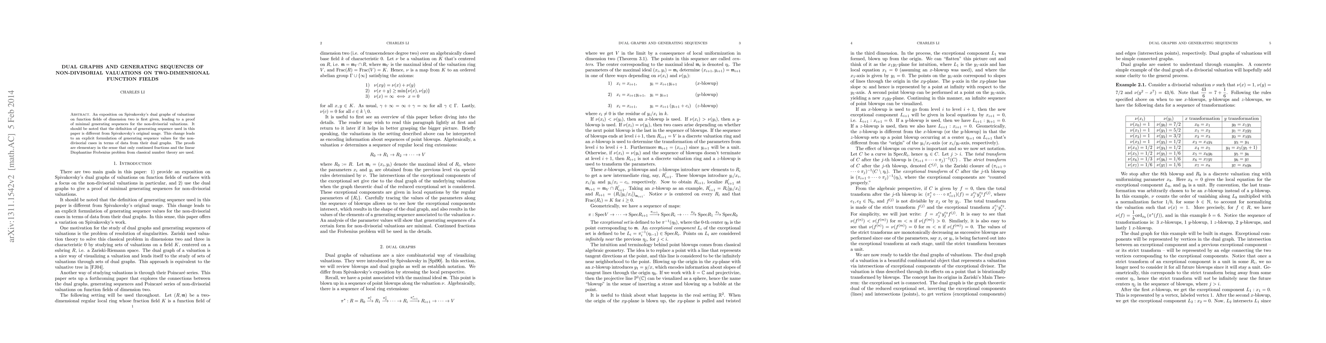 This paper explores Spivakovsky's dual graphs for valuations on two-dimensional function fields, presenting a new definition for generating sequences that yields explicit values for non-divisorial cases. The proofs rely on continued fractions and the linear Diophantine Frobenius problem from classical number theory.
