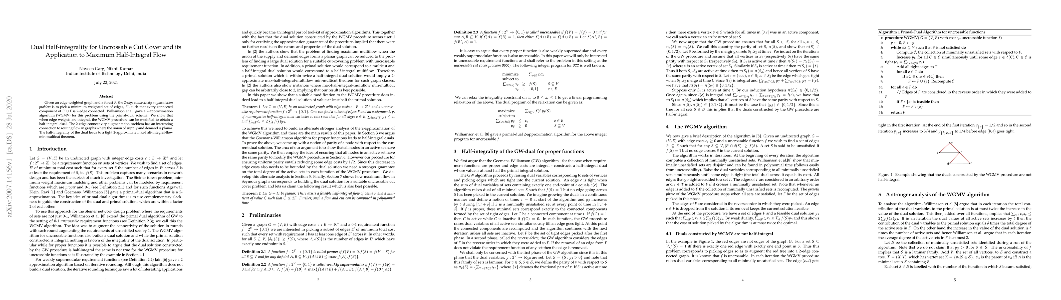 Given an edge weighted graph and a forest $F$, the $\textit{2-edge connectivity augmentation problem}$ is to pick a minimum weighted set of edges, $E'$, such that every connected component of $E'\cup F$ is 2-edge connected. Williamson et al. gave a 2-approximation algorithm (WGMV) for this problem using the primal-dual schema. We show that when edge weights are integral, the WGMV procedure can be modified to obtain a half-integral dual. The 2-edge connectivity augmentation problem has an interesting connection to routing flow in graphs where the union of supply and demand is planar. The half-integrality of the dual leads to a tight 2-approximate max-half-integral-flow min-multicut theorem.