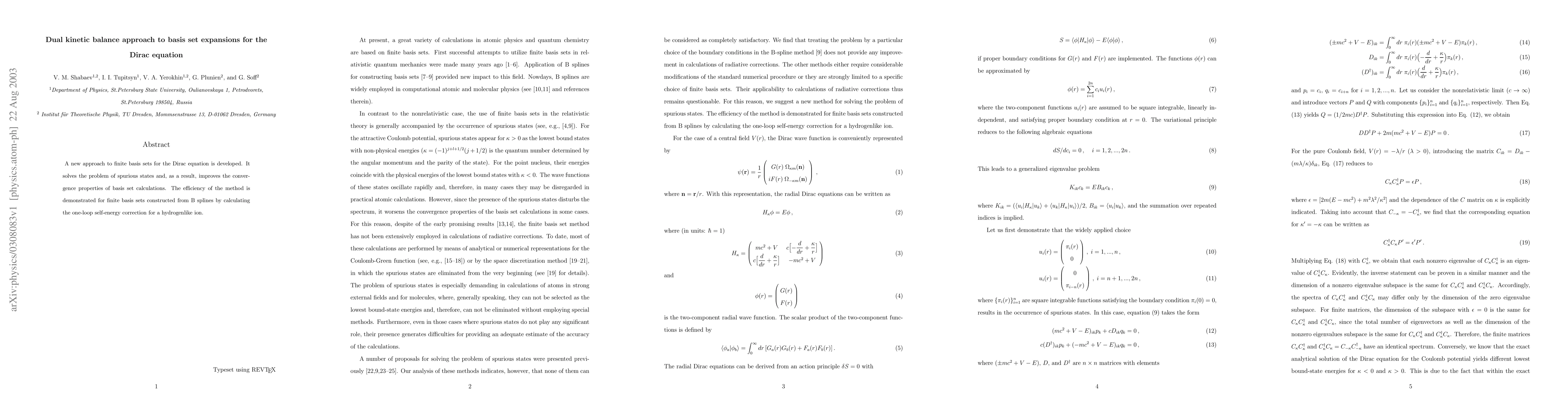 Summary: This paper introduces a dual kinetic balance approach for finite basis set expansions in Dirac equation calculations, effectively addressing spurious states and enhancing convergence. The method's efficiency is validated through the calculation of one-loop self-energy correction for hydrogenlike ions using B splines.