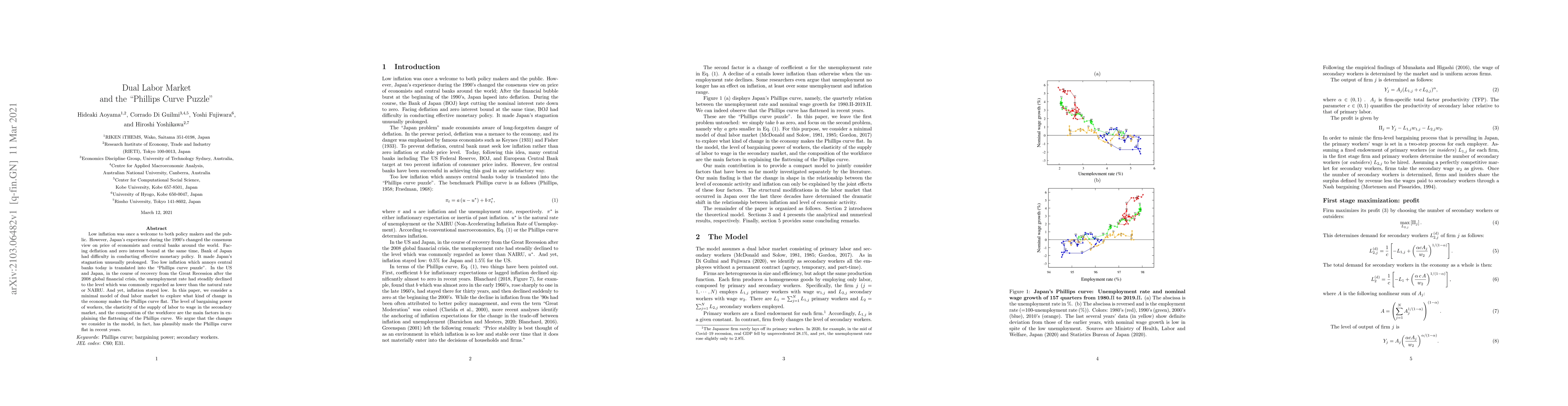 Low inflation was once a welcome to both policy makers and the public. However, Japan's experience during the 1990's changed the consensus view on price of economists and central banks around the world. Facing deflation and zero interest bound at the same time, Bank of Japan had difficulty in conducting effective monetary policy. It made Japan's stagnation unusually prolonged. Too low inflation which annoys central banks today is translated into the "Phillips curve puzzle". In the US and Japan, in the course of recovery from the Great Recession after the 2008 global financial crisis, the unemployment rate had steadily declined to the level which was commonly regarded as lower than the natural rate or NAIRU. And yet, inflation stayed low. In this paper, we consider a minimal model of dual labor market to explore what kind of change in the economy makes the Phillips curve flat. The level of bargaining power of workers, the elasticity of the supply of labor to wage in the secondary market, and the composition of the workforce are the main factors in explaining the flattening of the Phillips curve. We argue that the changes we consider in the model, in fact, has plausibly made the Phillips curve flat in recent years.