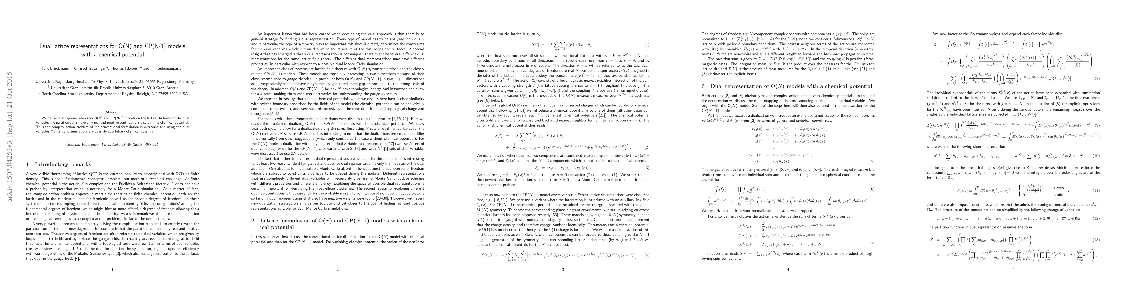 This paper presents dual lattice representations for O(N) and CP(N-1) models, enabling Monte Carlo simulations at finite chemical potentials without the complex action issue, thus facilitating simulations at arbitrary chemical potentials. The dual variables ensure real and positive contributions in the partition sums.