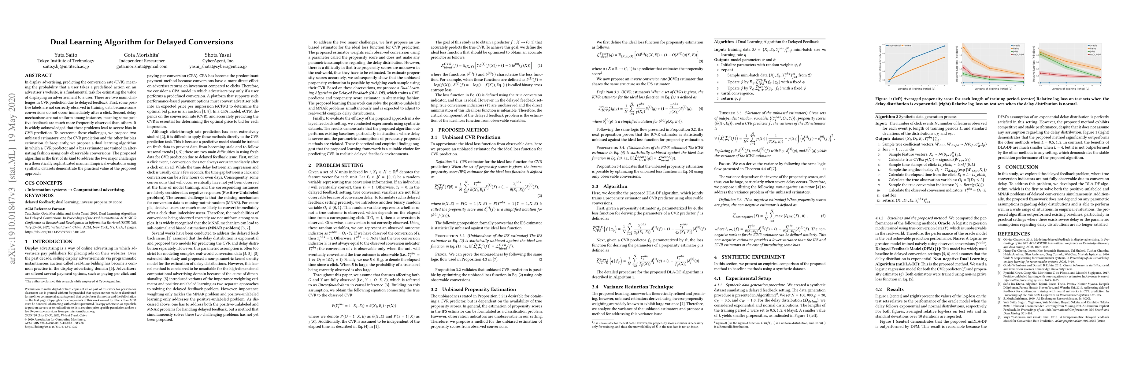 A new algorithm is proposed to address challenges in predicting conversion rates (CVR) in display advertising, including delayed feedback and non-uniform positive labels. Empirical evaluations show the practical value of the approach in overcoming these biases.