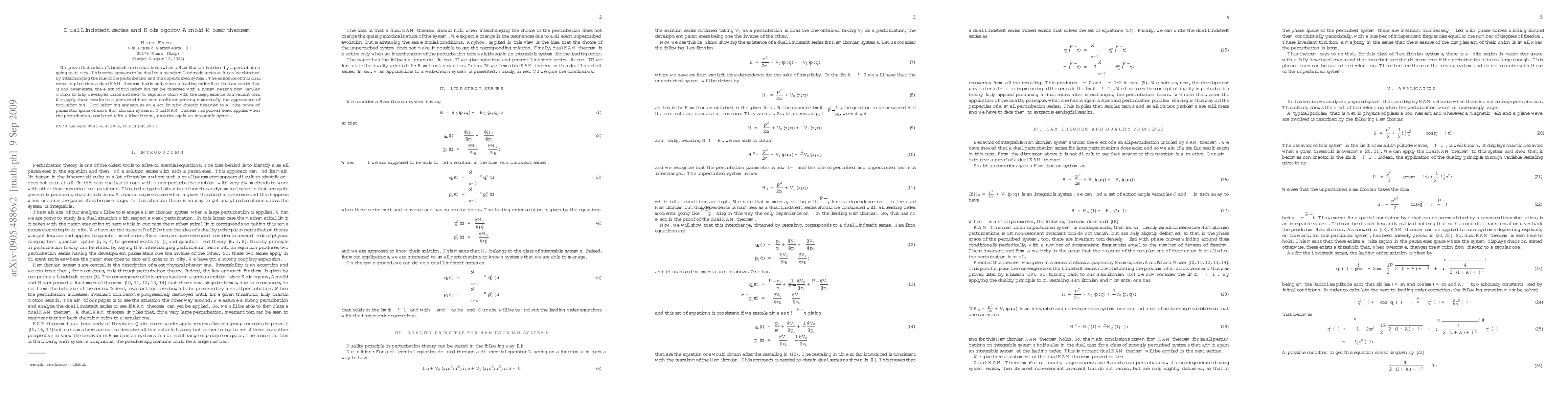 This paper proves the existence of a dual Lindstedt series for Hamiltonians driven by perturbations, showing that it implies a dual KAM theorem. This dual series allows observation of tori reforming, where systems transition from chaos to regular motion and back, demonstrating the finite range of chaotic behavior in certain Hamiltonian systems.