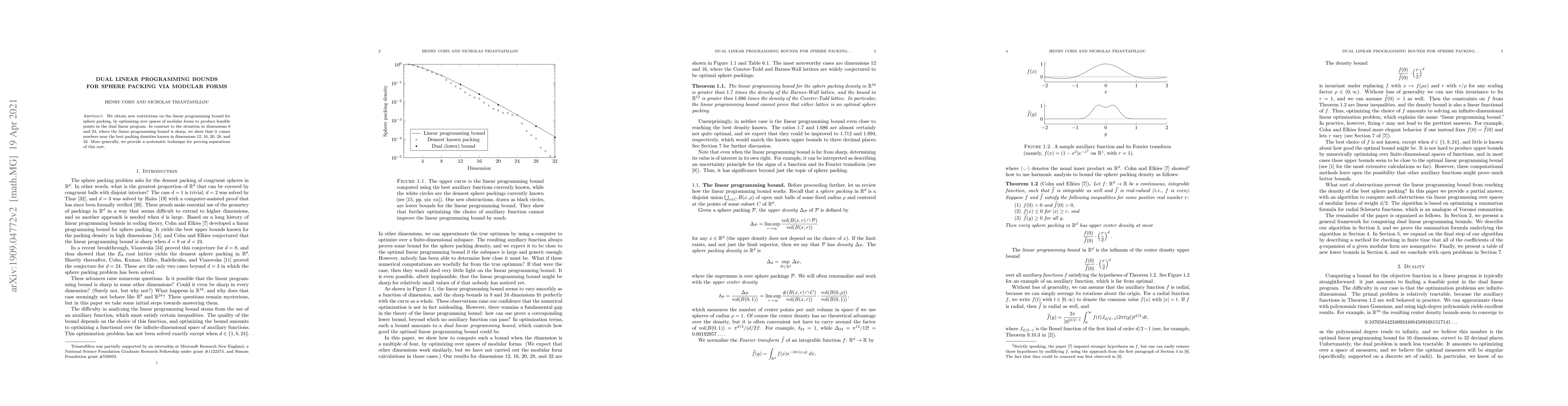 This paper introduces a novel method using modular forms to optimize the linear programming bound for sphere packing, revealing significant gaps in dimensions 12, 16, 20, 28, and 32, where the bound does not match known best packing densities. It also presents a systematic technique for establishing such separations.