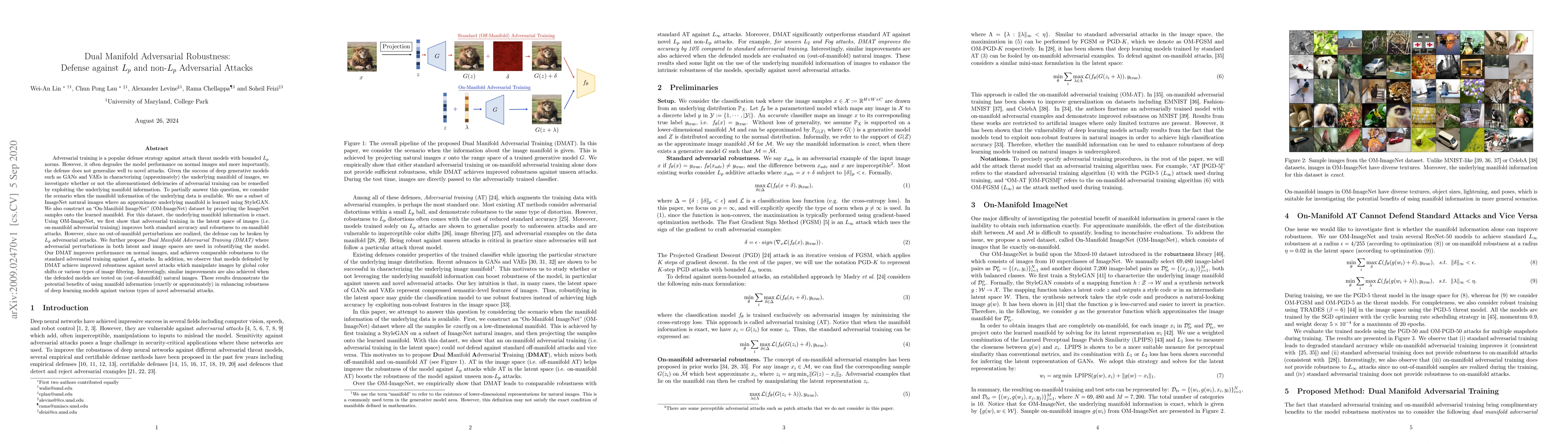 This paper explores using manifold information from deep generative models to improve adversarial robustness. It constructs an "On-Manifold ImageNet" dataset and shows that adversarial training in latent space enhances both accuracy and on-manifold attack robustness. The proposed Dual Manifold Adversarial Training (DMAT) method further improves robustness against Lp attacks and novel attacks like global color shifts, demonstrating the benefits of manifold information in defending against diverse adversarial threats.