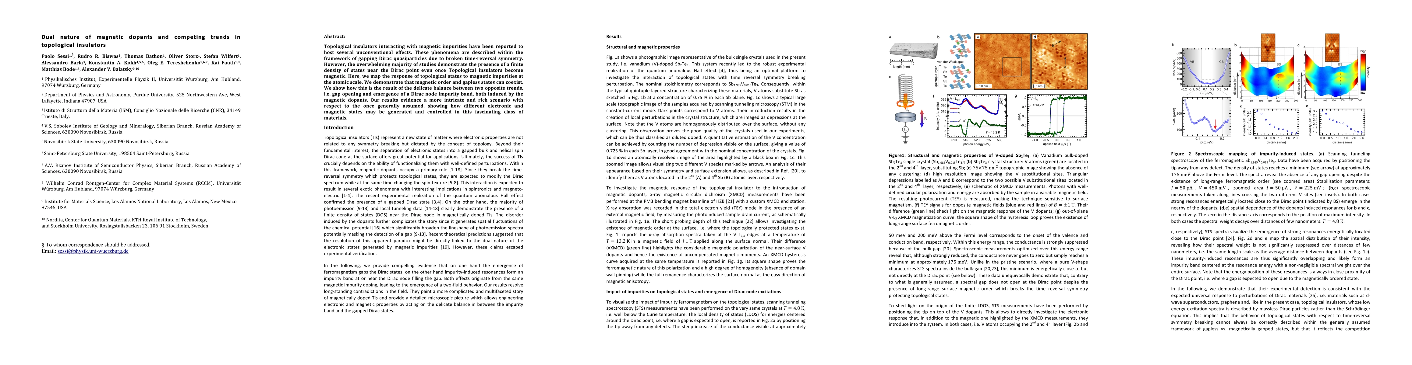 Topological insulators interacting with magnetic impurities have been reported to host several unconventional effects. These phenomena are described within the framework of gapping Dirac quasiparticles due to broken time-reversal symmetry. However, the overwhelming majority of studies demonstrate the presence of a finite density of states near the Dirac point even once Topological insulators become magnetic. Here, we map the response of topological states to magnetic impurities at the atomic scale. We demonstrate that magnetic order and gapless states can coexist. We show how this is the result of the delicate balance between two opposite trends, i.e. gap opening and emergence of a Dirac node impurity band, both induced by the magnetic dopants. Our results evidence a more intricate and rich scenario with respect to the once generally assumed, showing how different electronic and magnetic states may be generated and controlled in this fascinating class of materials.