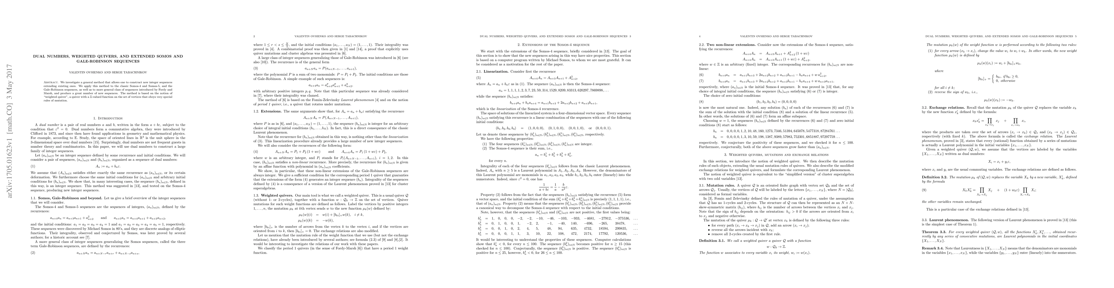 This paper introduces a method to extend classic integer sequences like the Somos-4, Somos-5, and Gale-Robinson sequences using "weighted quivers," which are quivers with a special $\mathbb Z$-valued function on vertices, leading to numerous new sequence constructions.