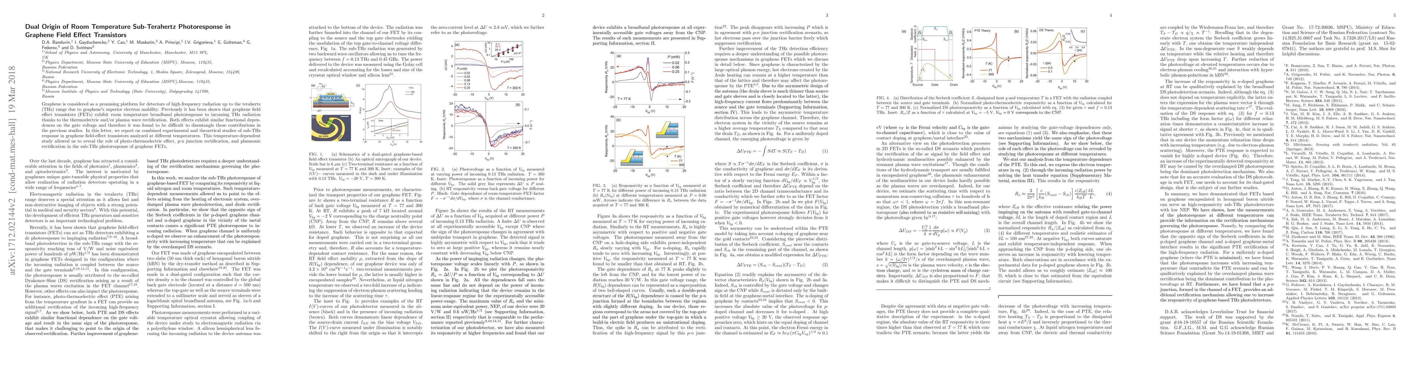 This paper explores the dual origins of room temperature sub-terahertz photoresponse in graphene field-effect transistors, revealing contributions from photo-thermoelectric effect, p-n junction rectification, and plasmonic rectification through temperature-dependent experimental and theoretical studies. The findings disentangle the previously ambiguous roles of thermoelectric and plasma wave rectification in the photoresponse.