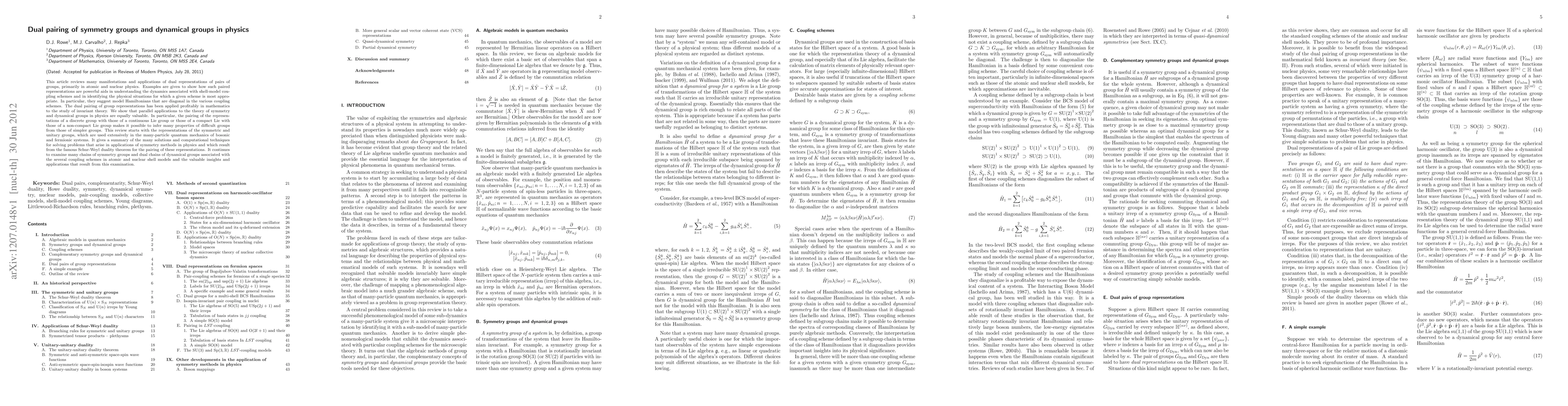 This paper explores the application of dual pairings between symmetry groups and dynamical groups in physics, revealing their value in understanding shell-model coupling schemes and identifying suitable physical situations.