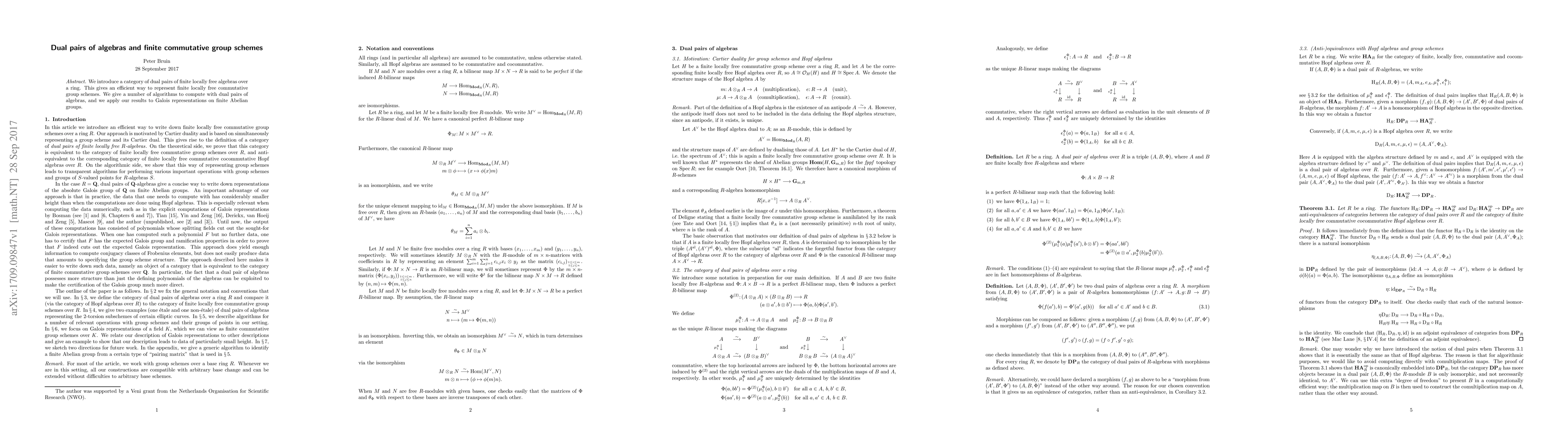 Researchers introduced a category of dual pairs of finite locally free algebras to efficiently represent finite locally free commutative group schemes, with applications to Galois representations on finite Abelian groups.