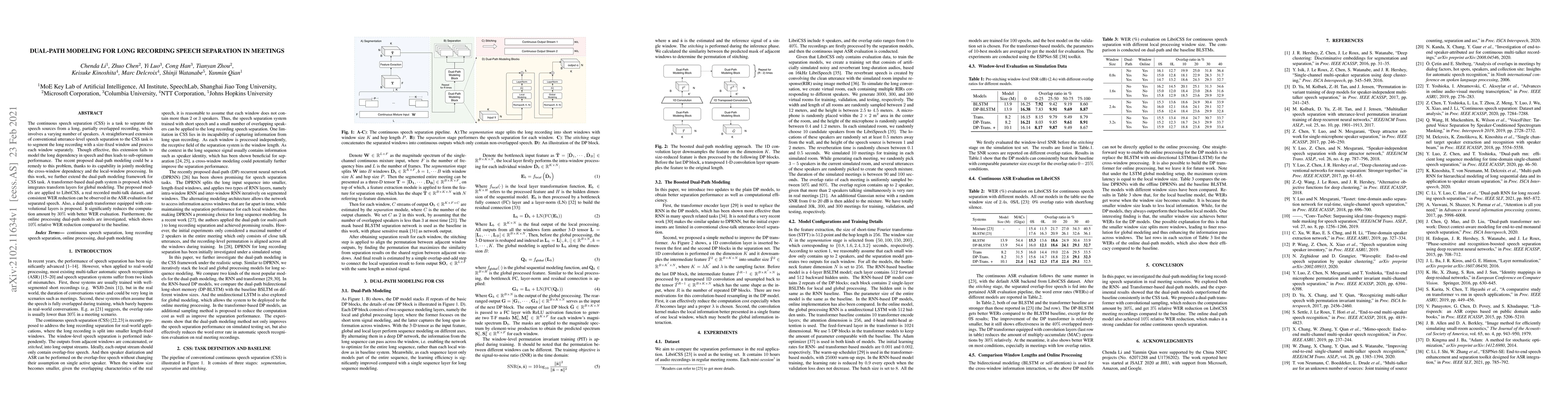 Researchers propose a dual-path modeling framework for long recording speech separation in meetings, achieving consistent WER reduction with transformer-based models and reduced computation using convolutional layers.
