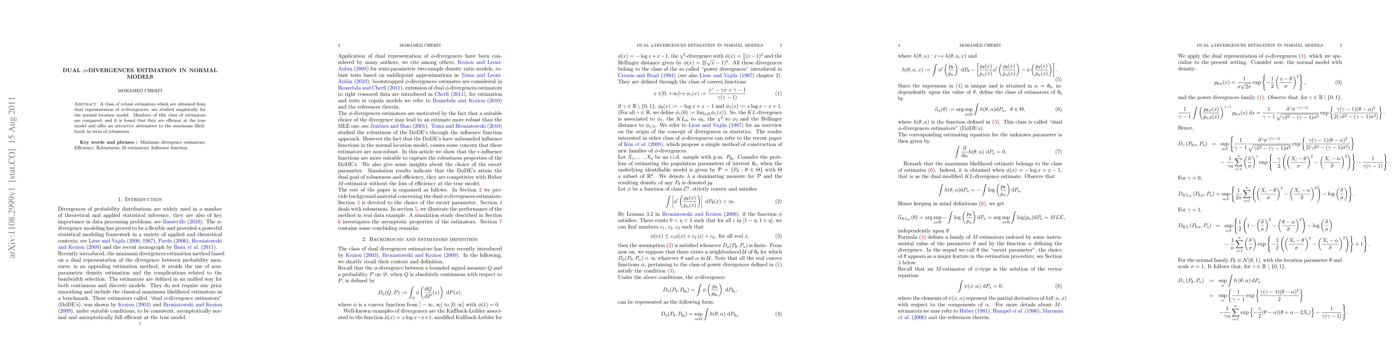 Empirical study compares robust estimators derived from dual $ heta$-divergences for normal location models, finding they offer efficient alternatives to maximum likelihood with improved robustness.