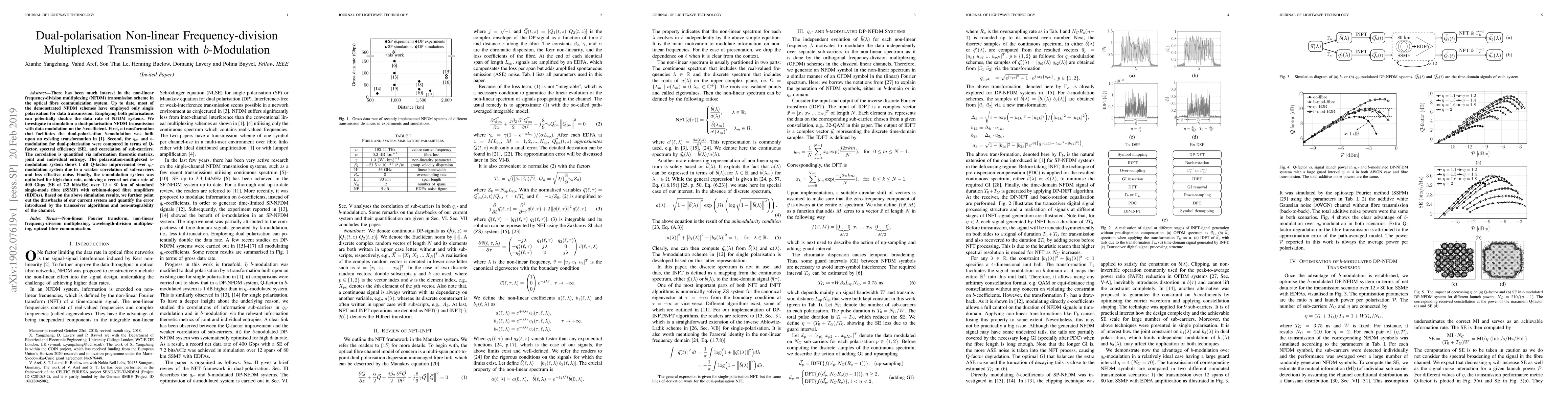 Researchers developed a dual-polarization non-linear frequency-division multiplexed transmission system with b-modulation, achieving a record net data rate of 400 Gbps over 12x80 km of standard single-mode fibre.