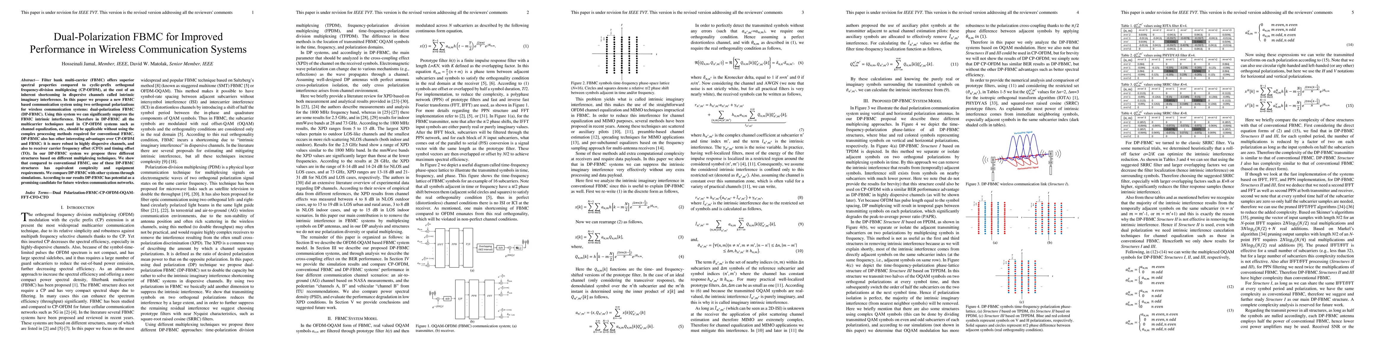 This paper proposes a dual-polarization FBMC (DP-FBMC) system to improve wireless communication performance by significantly reducing intrinsic interference. DP-FBMC is more robust in dispersive channels, and it maintains the benefits of multicarrier techniques without the complex processing required by conventional FBMC.