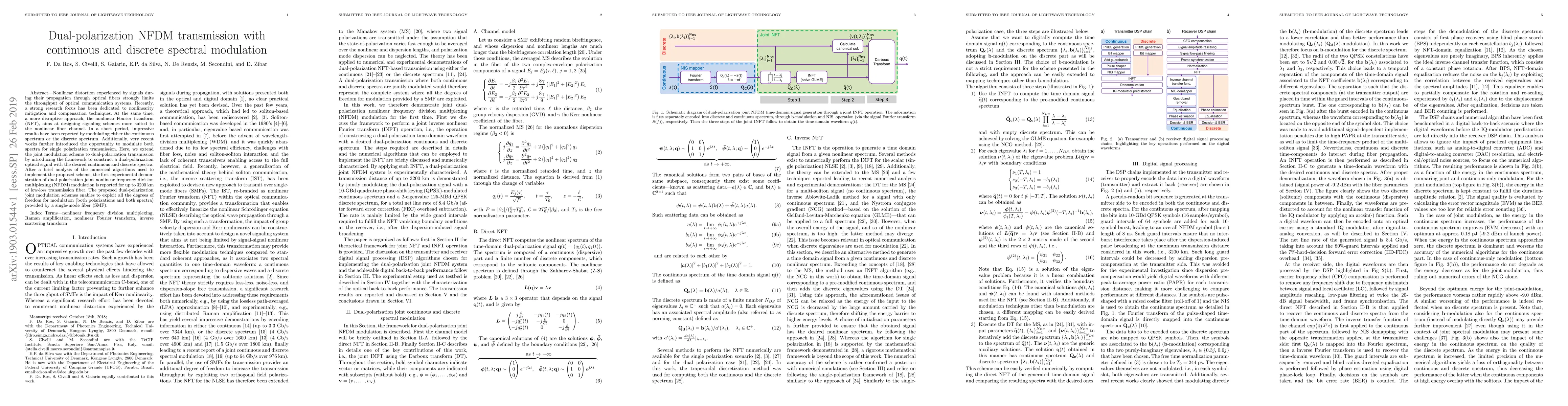 This paper proposes a dual-polarization nonlinear Fourier transform (NFT) modulation scheme that utilizes both continuous and discrete spectral modulation for optical communication systems. Experimental results demonstrate successful transmission over 3200 km, leveraging the full modulation capabilities of a single-mode fiber.