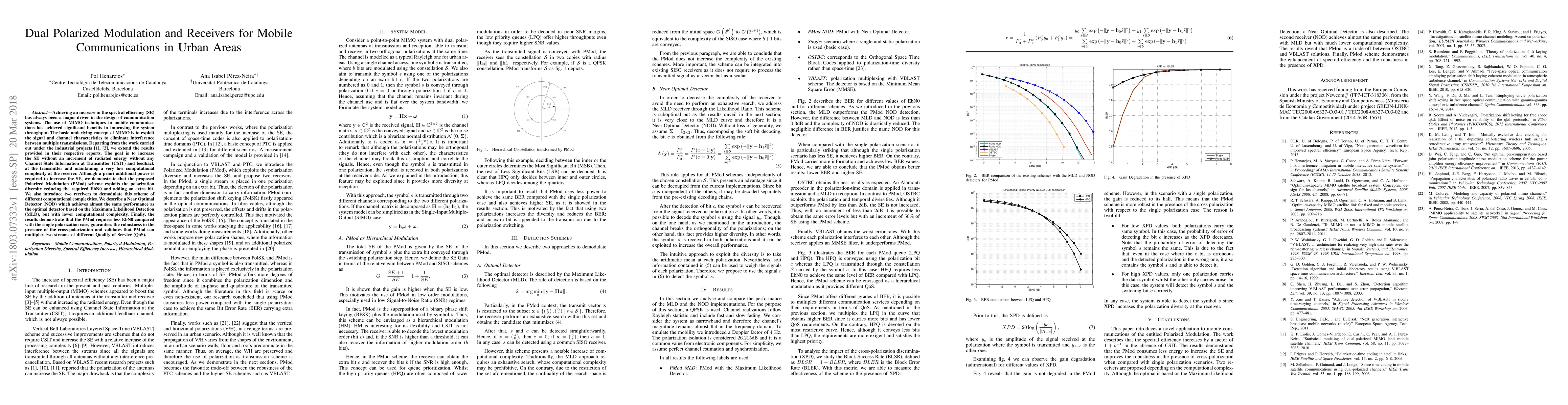 This paper proposes a Polarized Modulation (PMod) scheme to enhance spectral efficiency in mobile communications without requiring Channel State Information at the transmitter or additional feedback. It introduces two receivers with varying computational complexities, including a Near Optimal Detector (NOD) that offers performance close to the optimal Maximum Likelihood Detection but with lower computational demands. The results show that PMod reduces required energy and supports multiplexing two streams with different QoS.