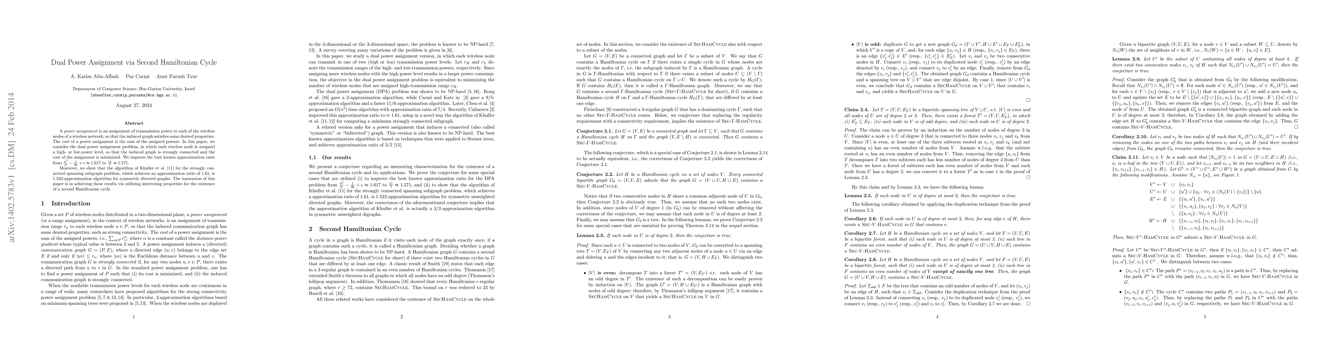 This research paper improves the approximation ratio for the dual power assignment problem in wireless networks from approximately 1.617 to 1.571, utilizing second Hamiltonian cycle properties. It also demonstrates that an existing algorithm for the strongly connected spanning subgraph problem is a 1.522-approximation for symmetric directed graphs.