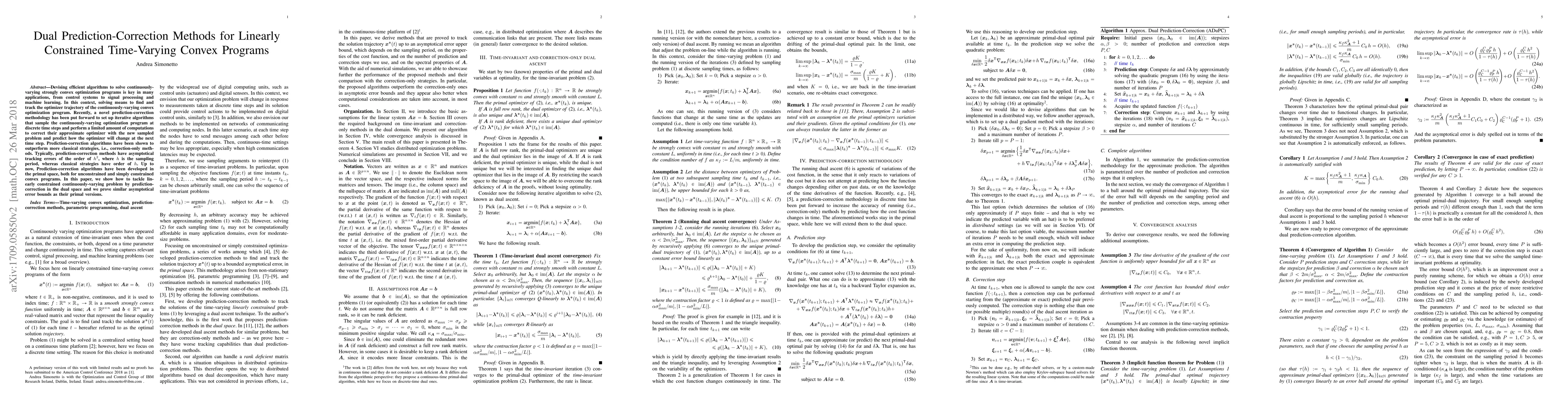 This paper develops dual prediction-correction methods for solving linearly constrained, continuously-varying convex optimization programs. The proposed approach achieves the same asymptotic tracking error of $h^2$ as primal prediction-correction methods, outperforming classical correction-only strategies.
