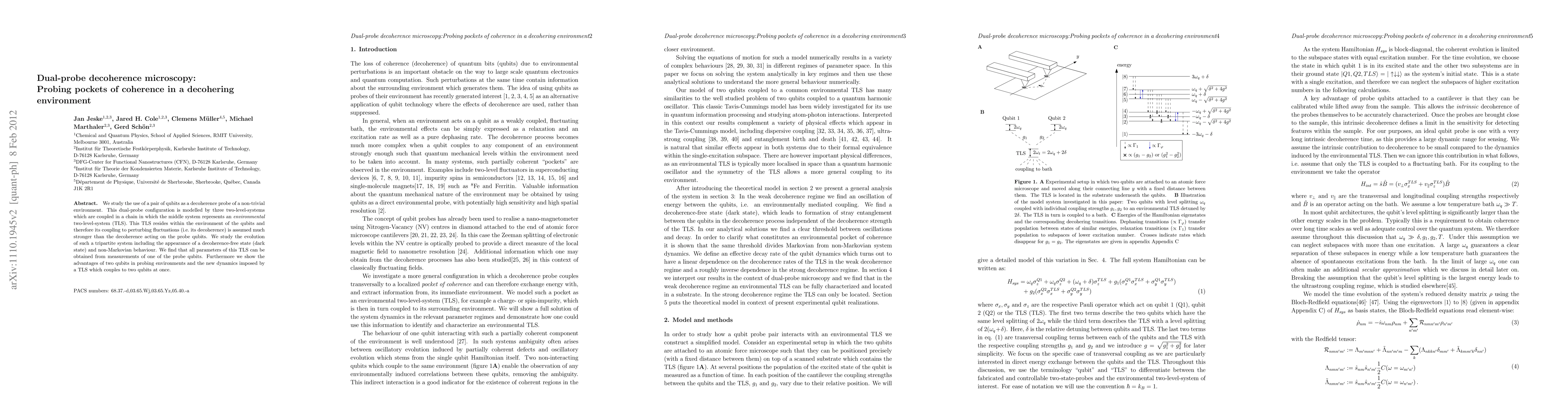 We study the use of a pair of qubits as a decoherence probe of a non-trivial environment. This dual-probe configuration is modelled by three two-level-systems which are coupled in a chain in which the middle system represents an environmental two-level-system (TLS). This TLS resides within the environment of the qubits and therefore its coupling to perturbing fluctuations (i.e. its decoherence) is assumed much stronger than the decoherence acting on the probe qubits. We study the evolution of such a tripartite system including the appearance of a decoherence-free state (dark state) and non-Markovian behaviour. We find that all parameters of this TLS can be obtained from measurements of one of the probe qubits. Furthermore we show the advantages of two qubits in probing environments and the new dynamics imposed by a TLS which couples to two qubits at once.