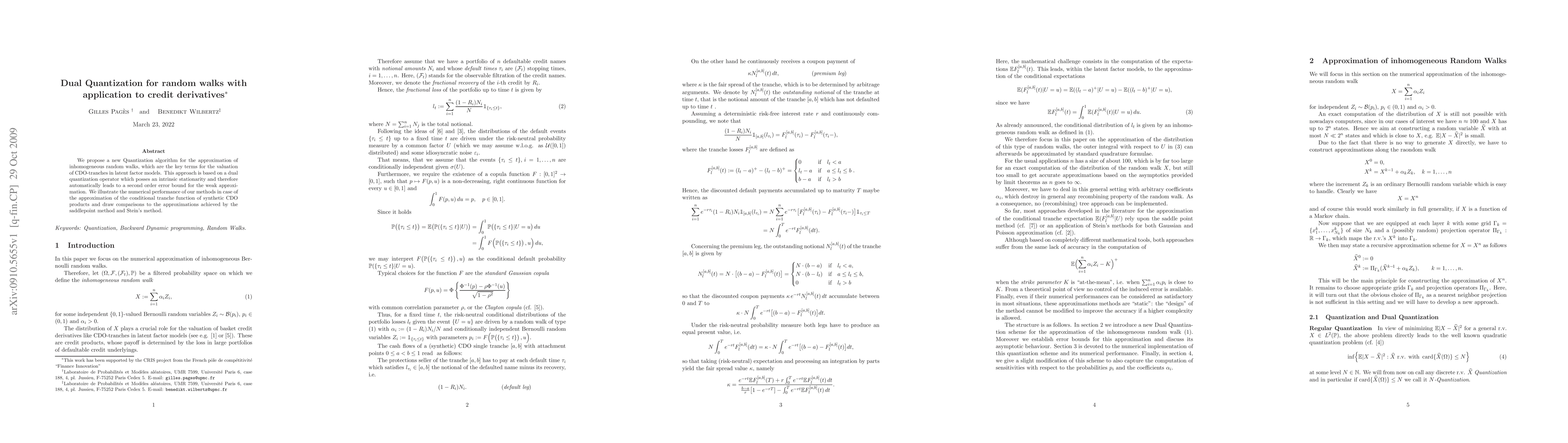 The paper introduces a novel Dual Quantization algorithm for approximating inhomogeneous random walks, crucial in valuing CDO-tranches. This method offers an intrinsic stationarity, ensuring a second-order error bound, and outperforms saddlepoint and Stein's methods in numerical simulations of synthetic CDO products.