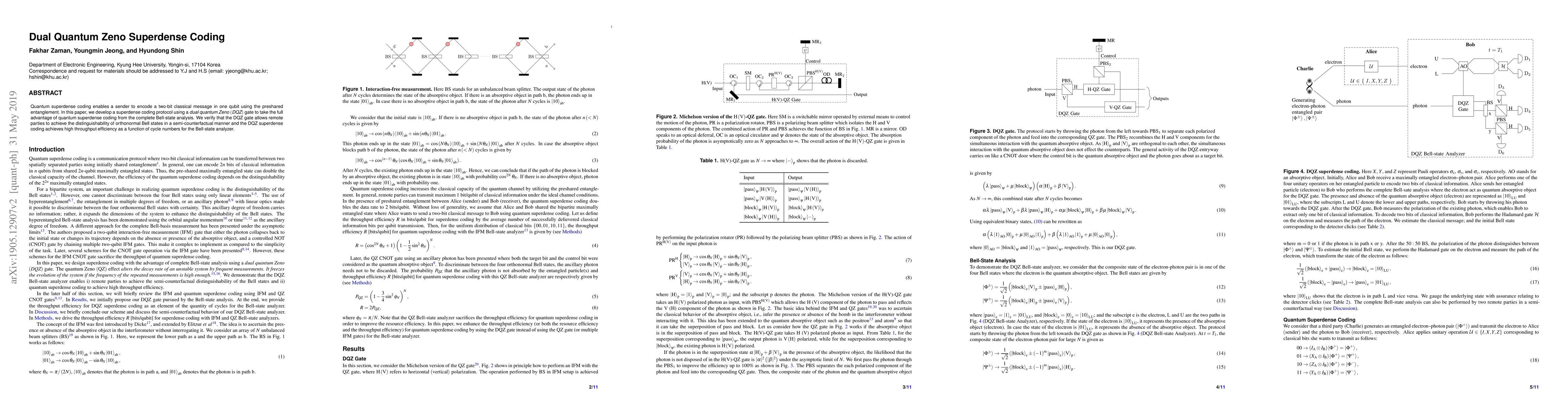 This paper proposes a superdense coding protocol utilizing a dual quantum Zeno gate to maximize efficiency through complete Bell-state analysis. The dual quantum Zeno gate enables semi-counterfactual distinguishability of Bell states, achieving high throughput efficiency relative to the number of analysis cycles.