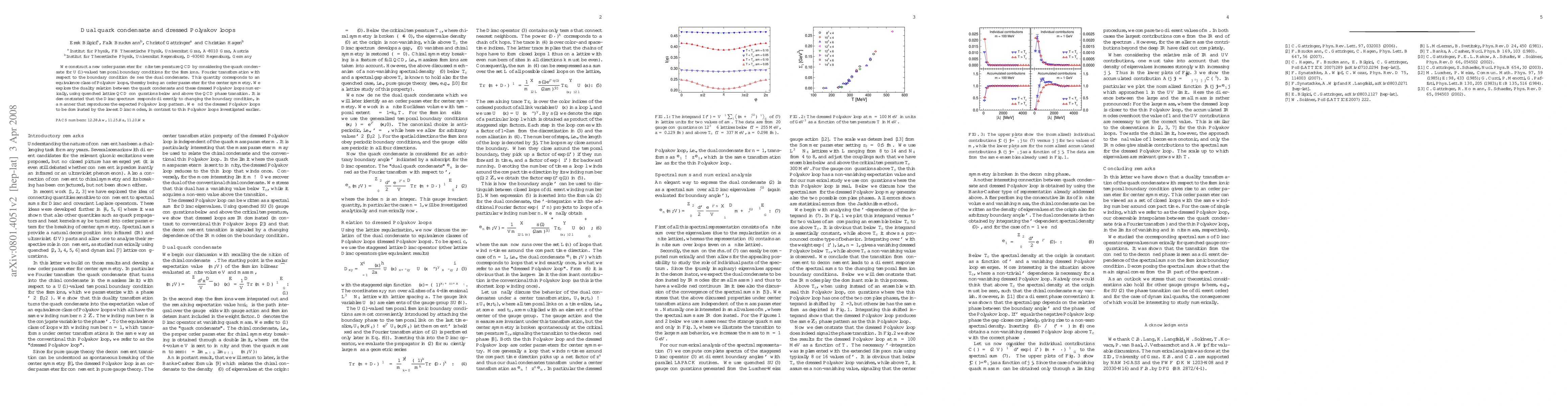 This paper introduces a new order parameter for finite temperature QCD based on the dual quark condensate and dressed Polyakov loops, demonstrating their duality numerically using quenched lattice QCD. It finds that the Dirac spectrum's behavior correlates with the expected Polyakov loop pattern, with the dressed loops primarily influenced by the lowest Dirac modes.