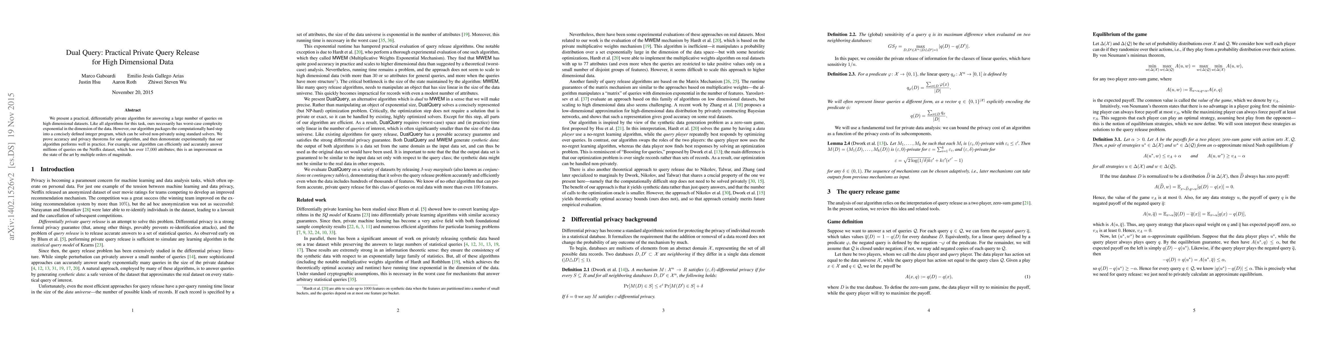 This paper introduces a differentially private algorithm for efficiently answering numerous queries on high-dimensional datasets, transforming the computationally intensive task into a solvable integer program. The authors demonstrate both theoretical accuracy and privacy guarantees, and show practical efficiency through experiments on the Netflix dataset.