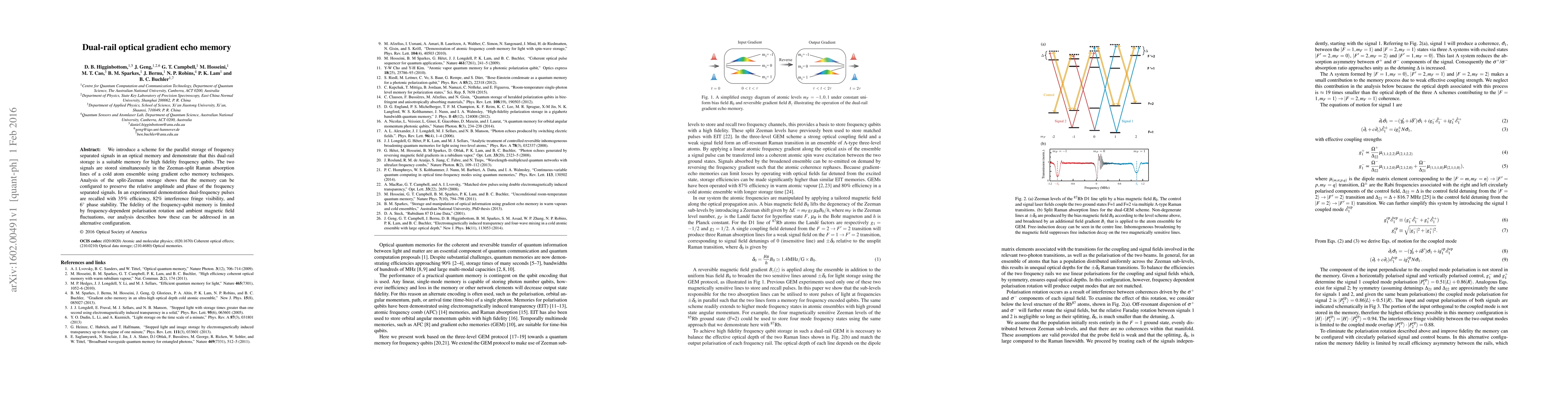 Researchers developed a method for storing frequency-separated signals in an optical memory using cold atoms, achieving 35% efficiency and 82% interference fringe visibility, with potential applications in high-fidelity frequency qubits.